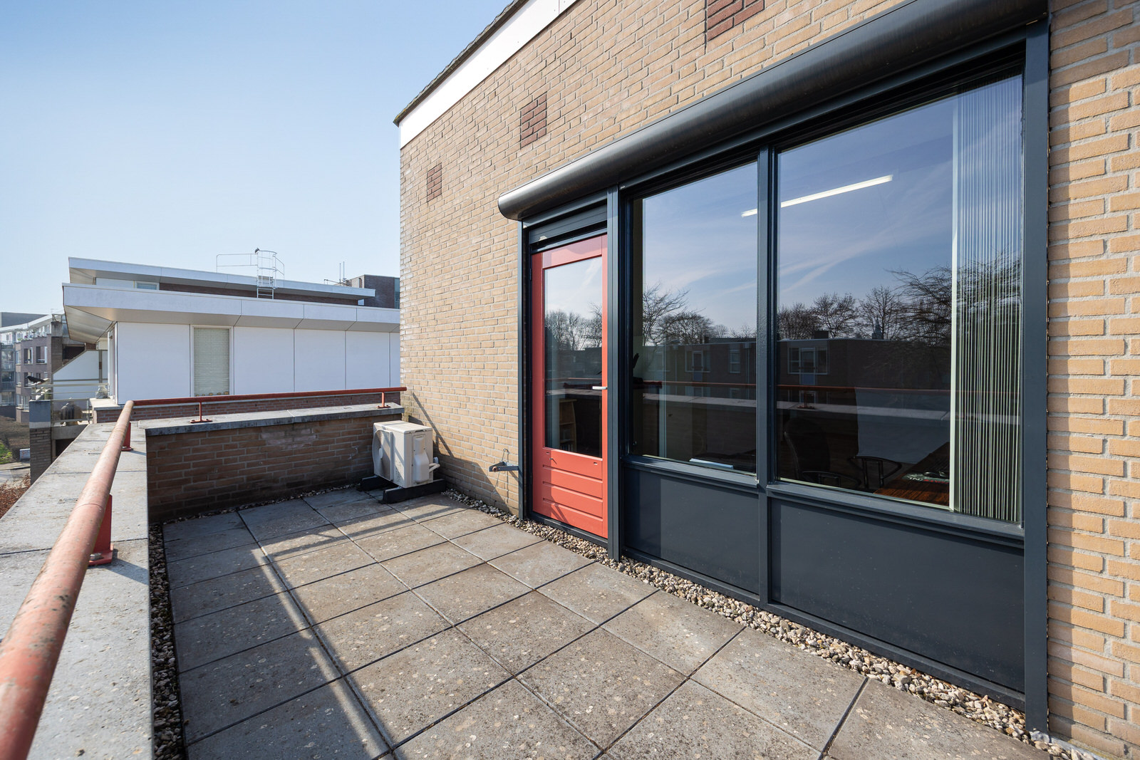Het dakterras ligt op het oosten en vormt een fijne extra buitenruimte. Hier kun je al vroeg op de dag genieten van de zon en is er voldoende ruimte voor een zit- of loungehoek.