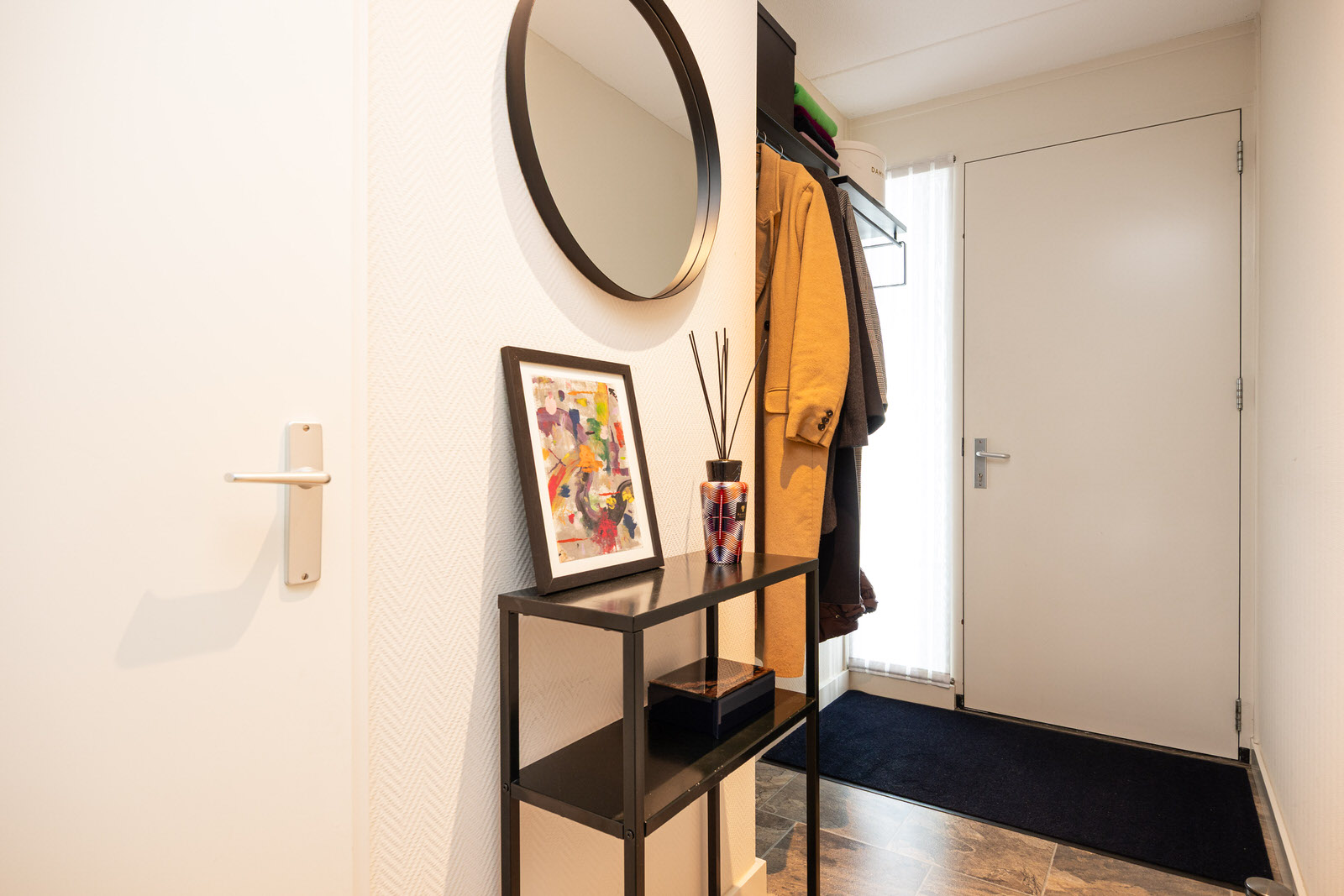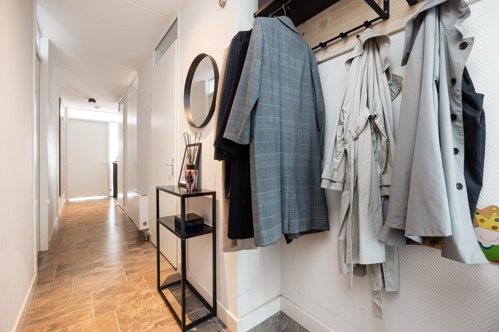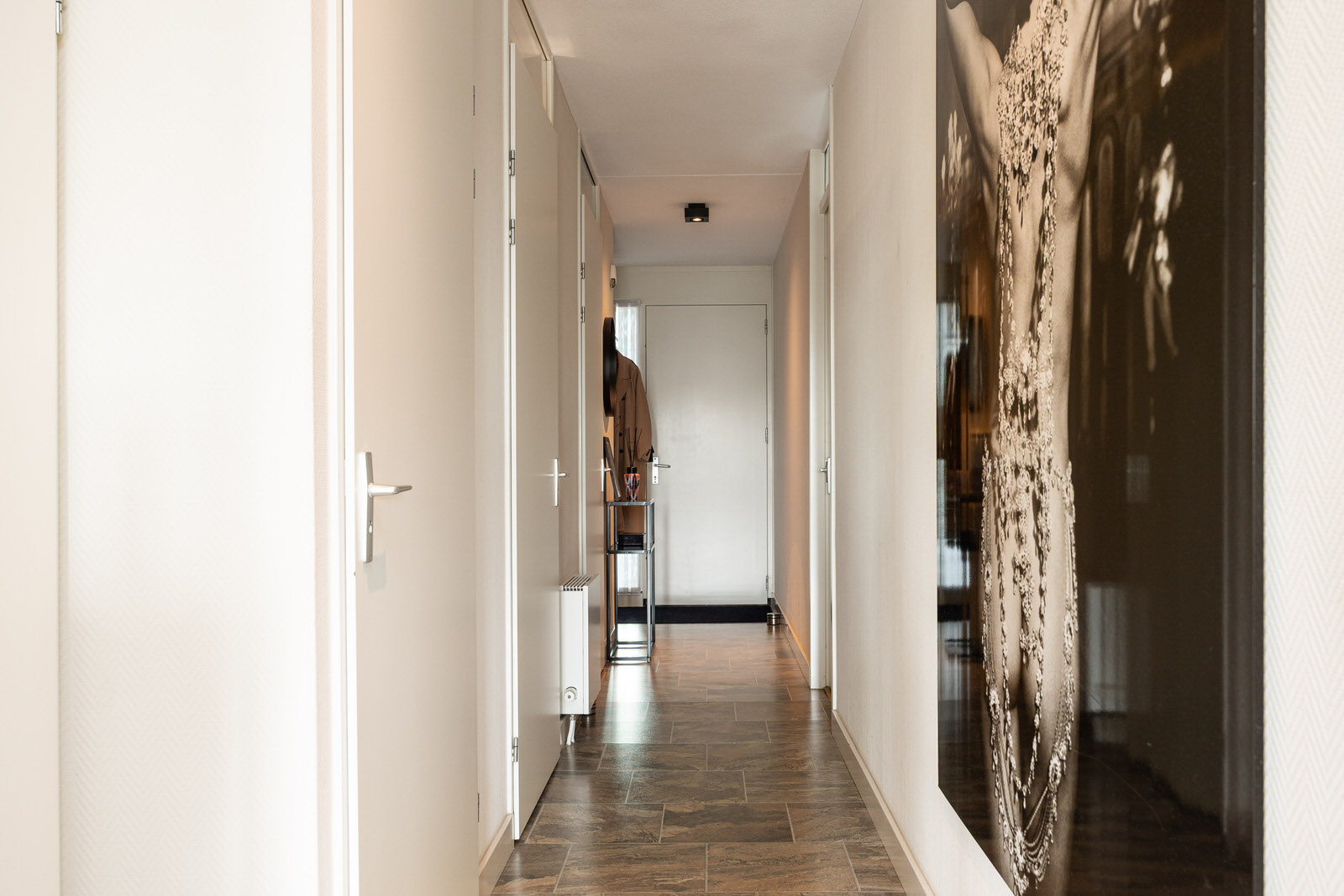 De nette gezamenlijke entree met brievenbussen, videofoon, trapopgang en lift geeft toegang tot de galerij. Via de galerij aan de rustige binnenzijde van het complex kom je bij de voordeur van het appartement. Binnen wacht een lichte en verzorgde hal met ruimte voor een kapstok of dressoir. Vanuit hier zijn alle vertrekken bereikbaar: de woonkamer, slaapkamers, badkamer, toiletruimte en de praktische inpandige berging.