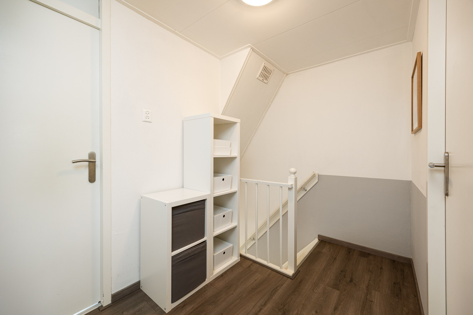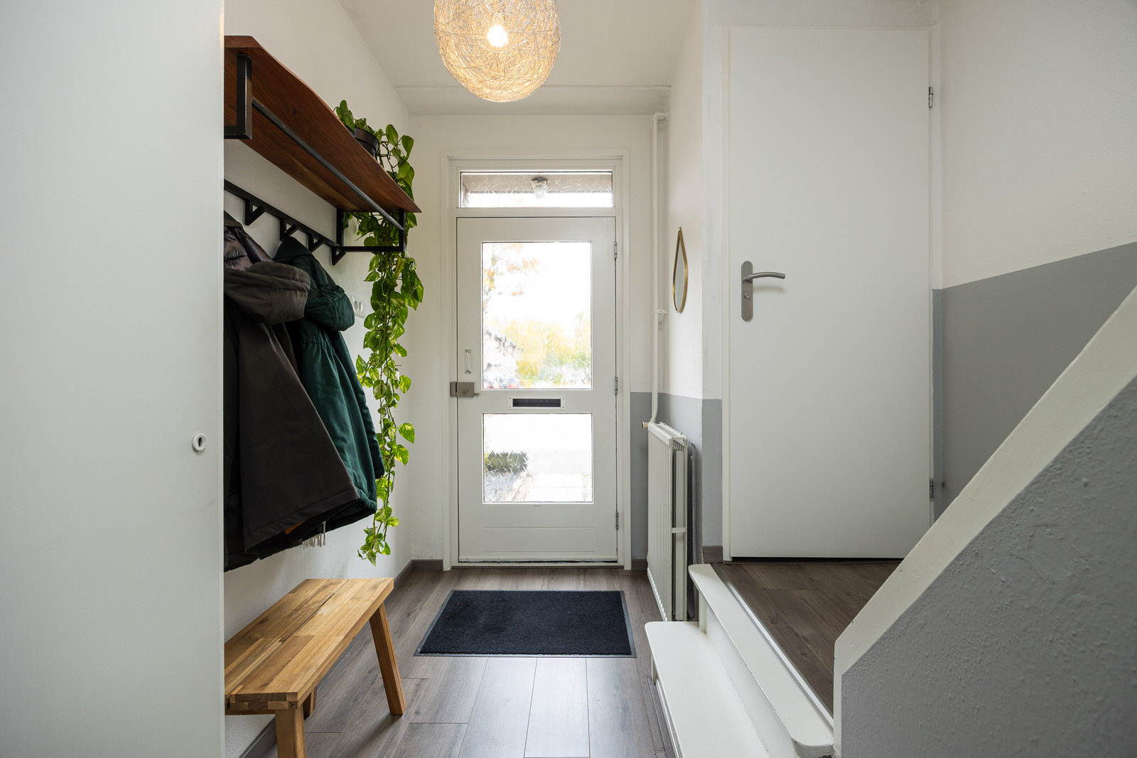 De entree aan de voorzijde biedt toegang tot de hal met garderobe, meterkast en trapopgang naar de verdieping. De hal vormt een prettige ontvangst en geeft direct een verzorgd eerste indruk van de woning.