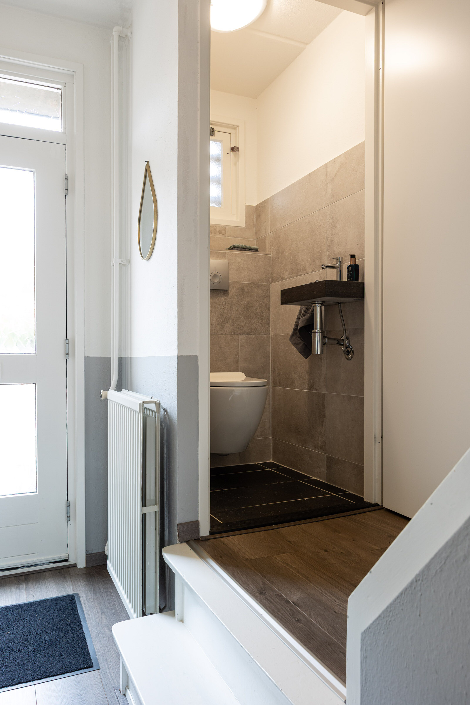 De badkamer is functioneel en volledig betegeld, voorzien van een douche, wastafel en tweede toilet. Modernisering naar eigen smaak behoort hier tot de mogelijkheden, maar de ruimte is netjes onderhouden en direct bruikbaar.