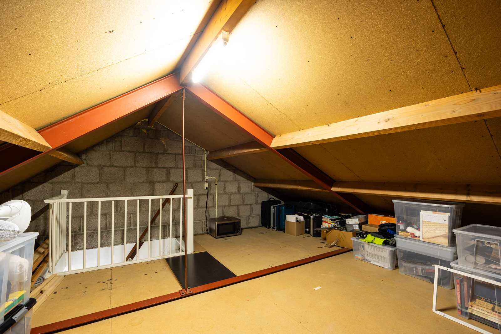• De tweede verdieping is bereikbaar via een vaste trap en biedt extra bergruimte en mogelijkheden voor hobby of opslag.