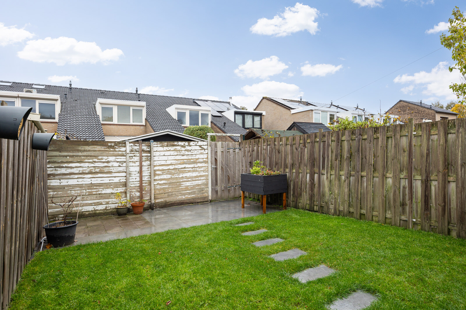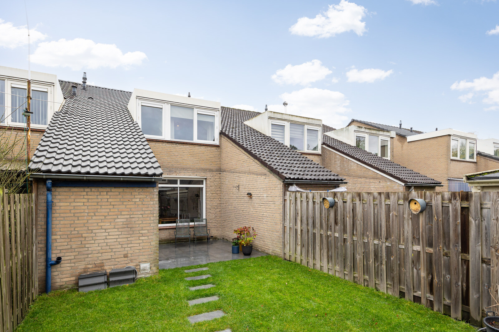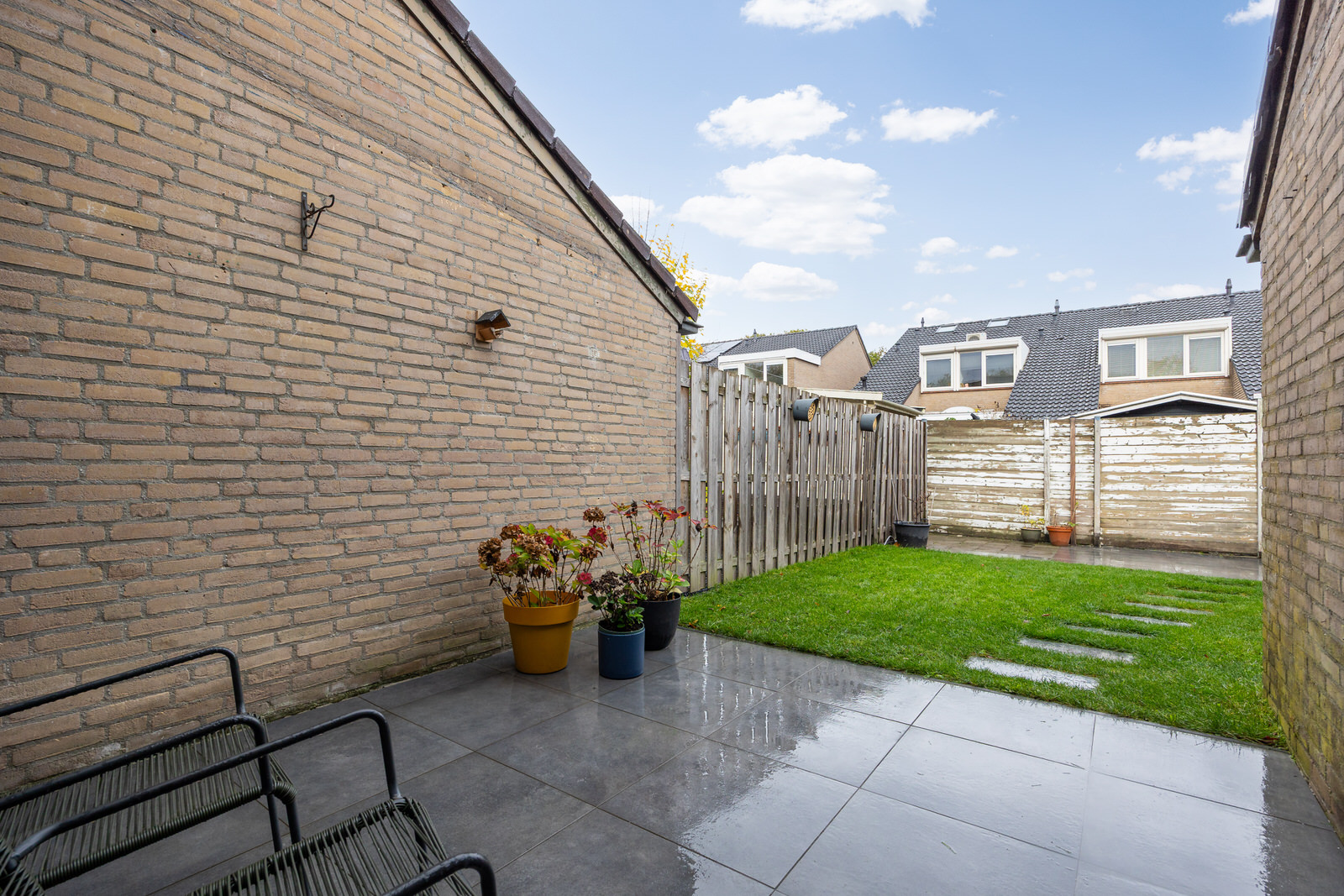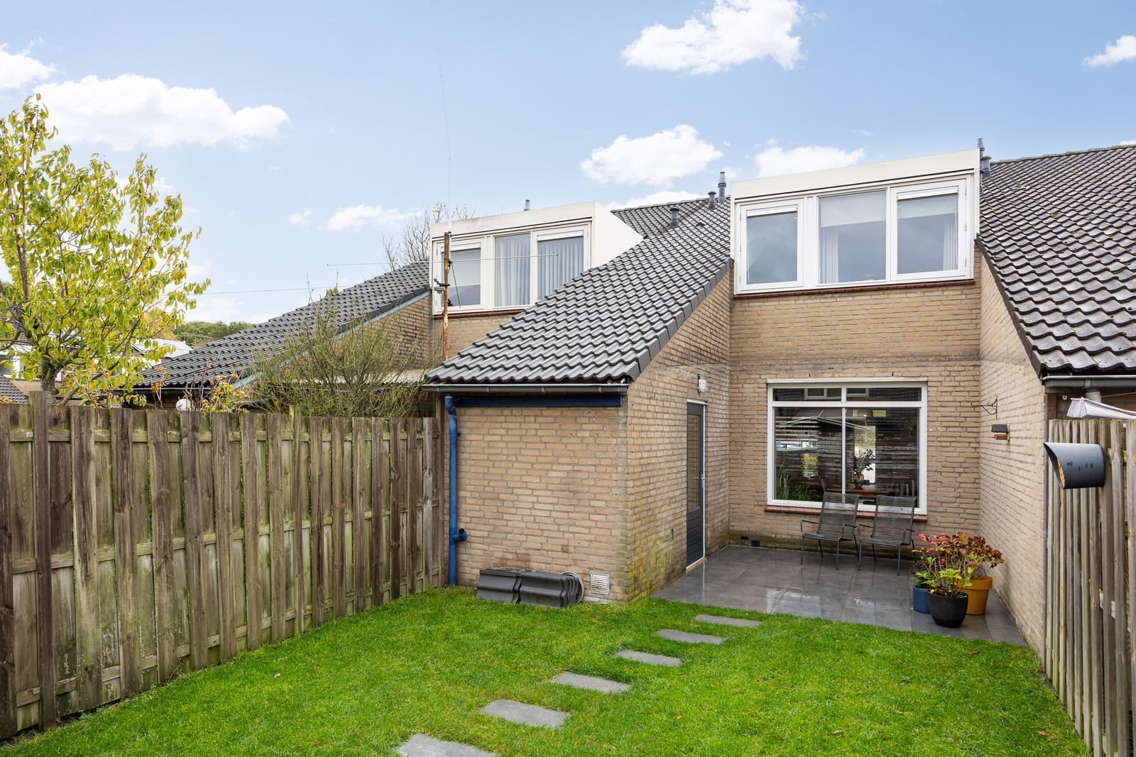 De achtertuin is verzorgd aangelegd en is voldoende diep, waardoor er tijdens zonnige dagen een plek in de zon of schaduw is. Direct achter de woning ligt een ruim terras, ideaal voor een loungeset of buitentafel met stoelen. Verder bestaat de tuin uit bestrating en een gazon. Via de achterom is de tuin goed bereikbaar. Ook de voortuin is netjes aangelegd en draagt bij aan het verzorgde straatbeeld.