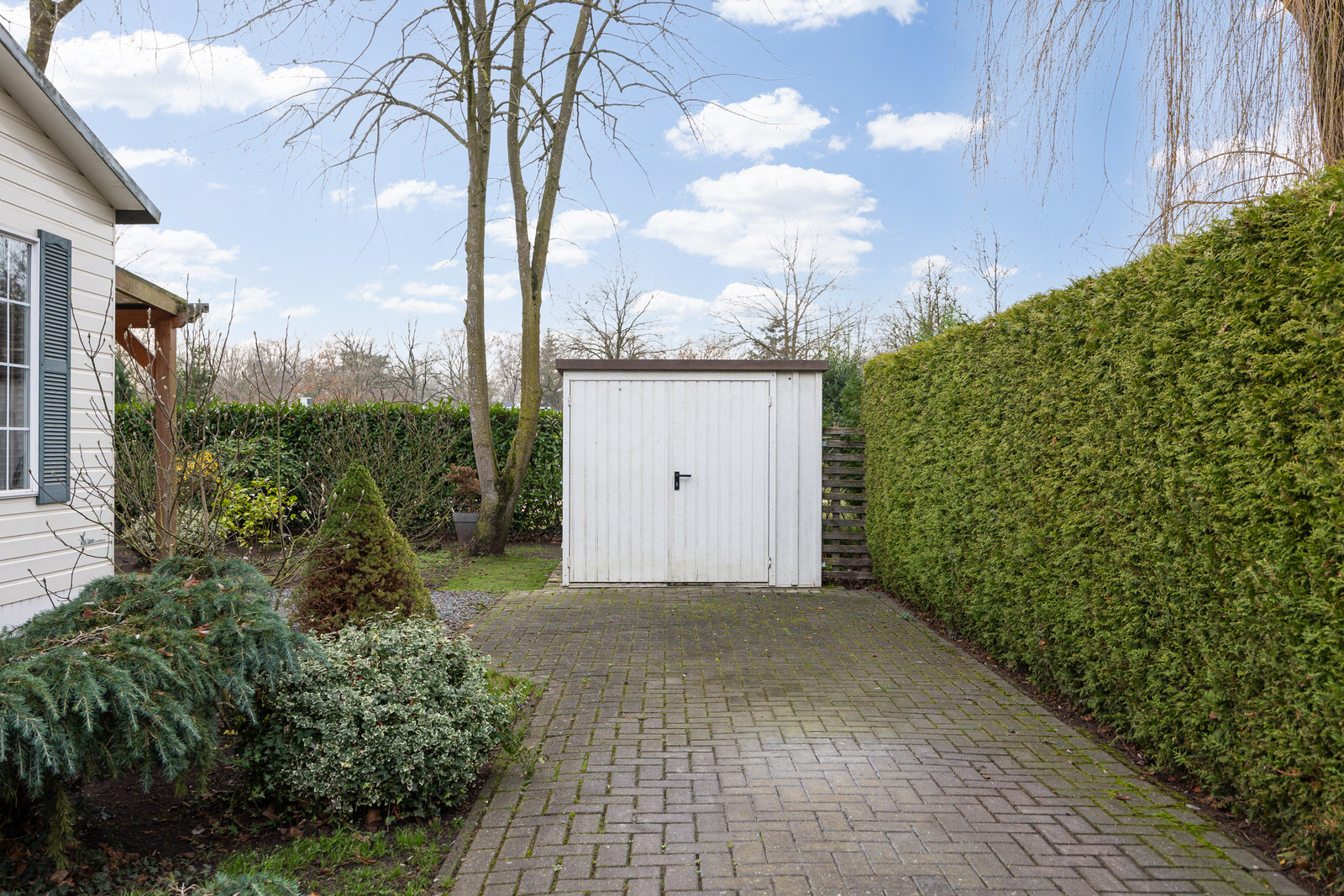 Op het perceel staat een vrijstaande berging, ideaal voor het stallen van fietsen, tuinmeubilair of gereedschap. De berging is goed bereikbaar en praktisch in gebruik.