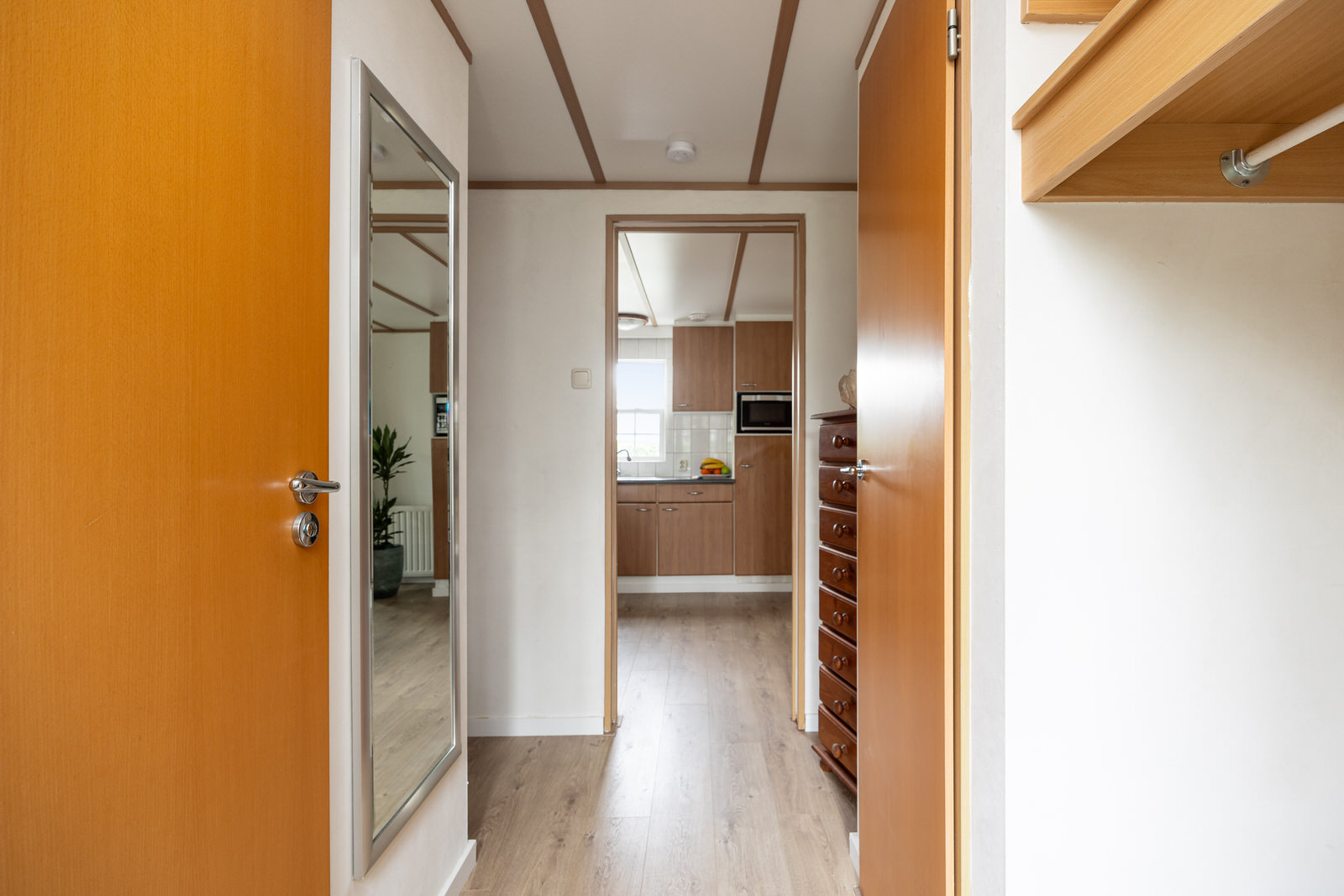 Via de entree kom je in de hal, die is afgewerkt met een laminaatvloer. Vanuit hier zijn de badkamer, slaapkamer, berging en woonkamer bereikbaar. Hier bevindt zich ook de garderobe en een vaste kast met de cv-opstelling. De hal is verzorgd en functioneel en vormt een centraal punt in de woning.