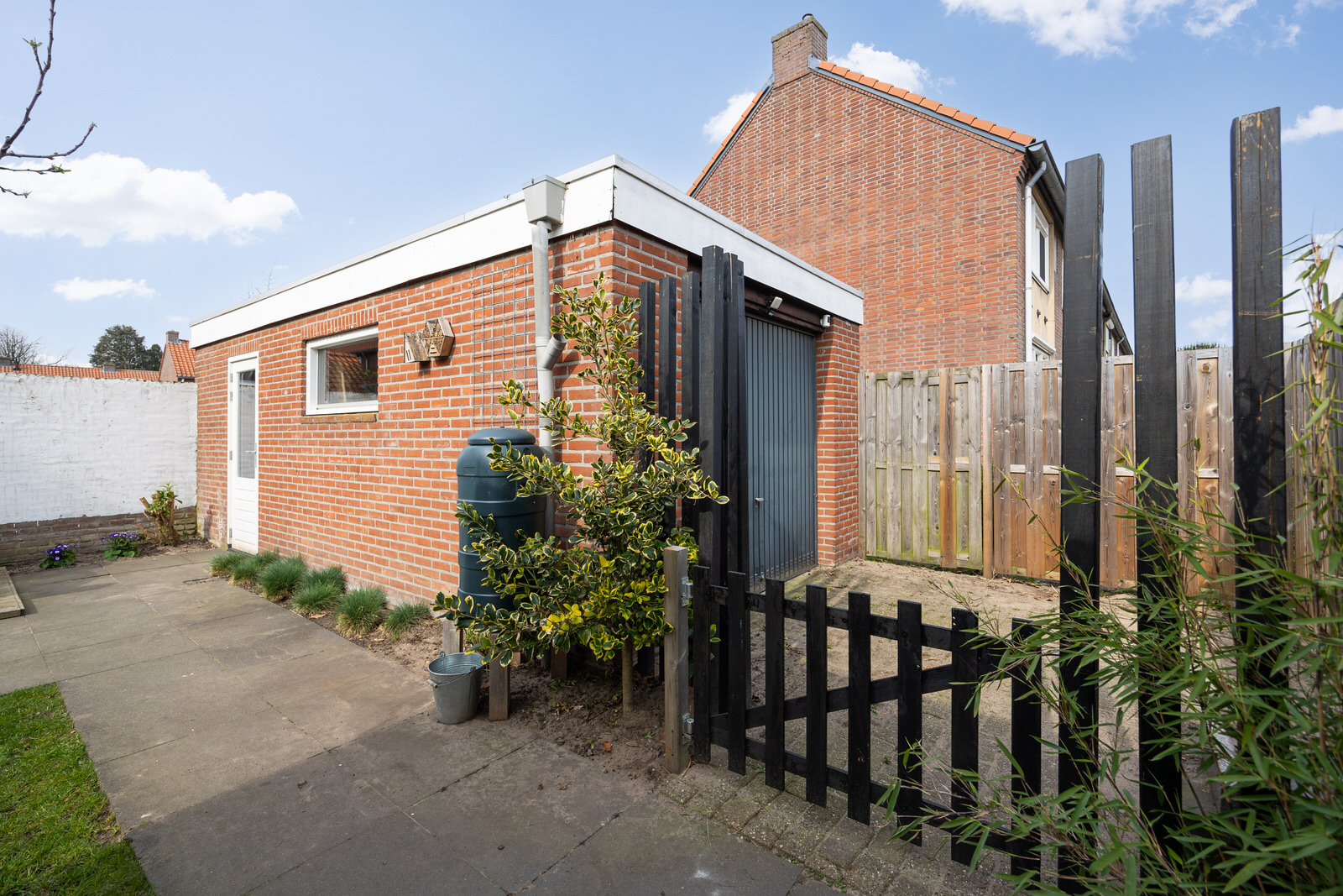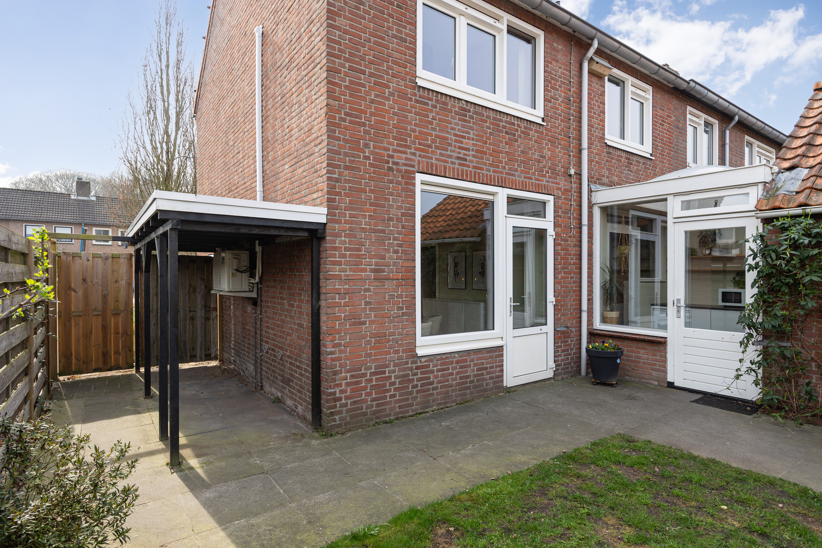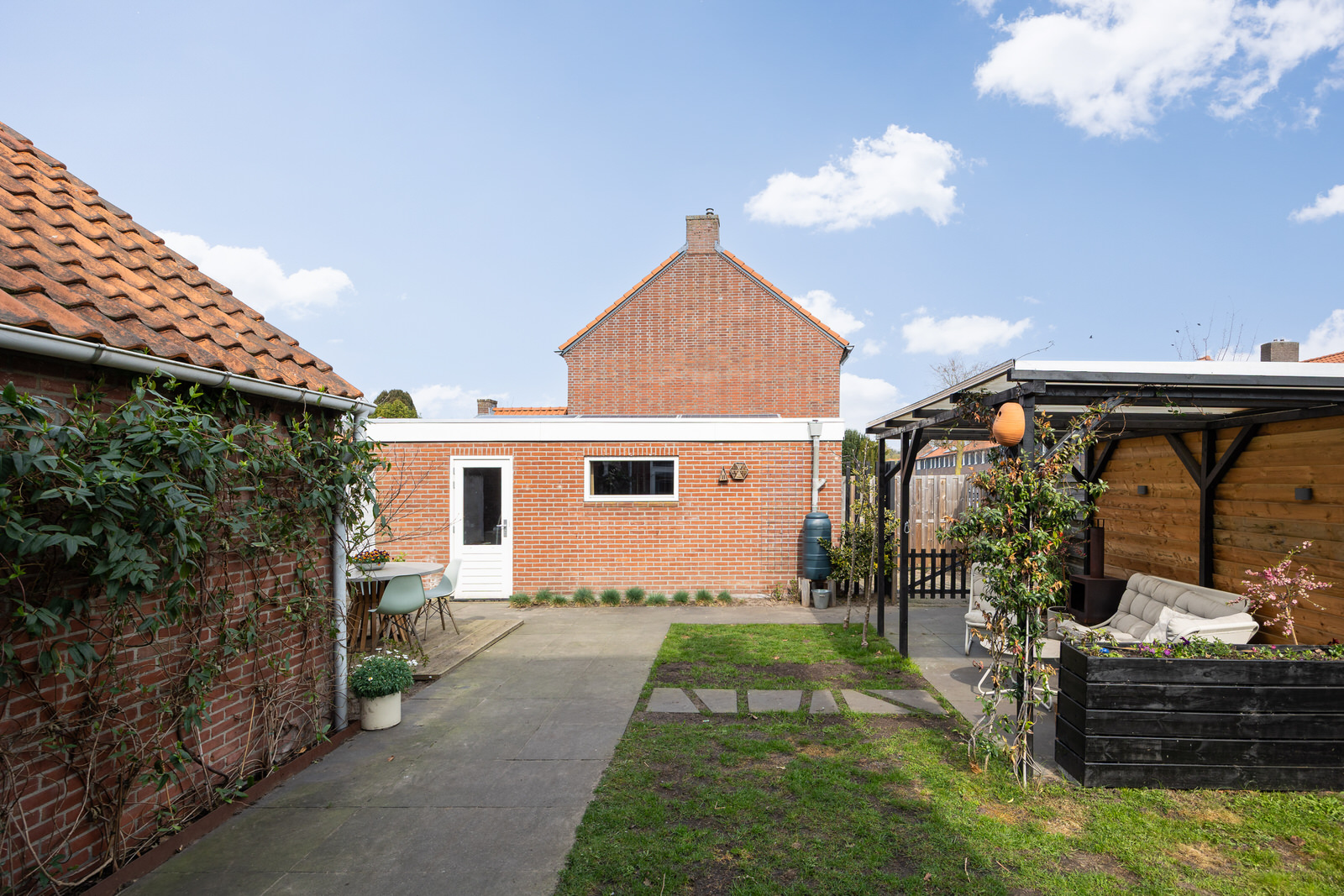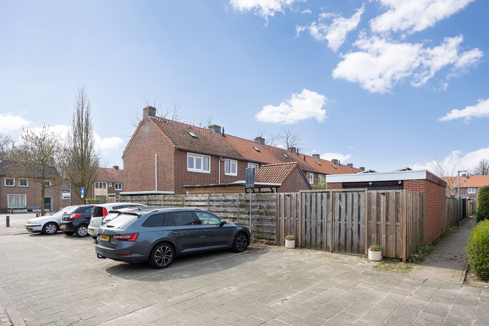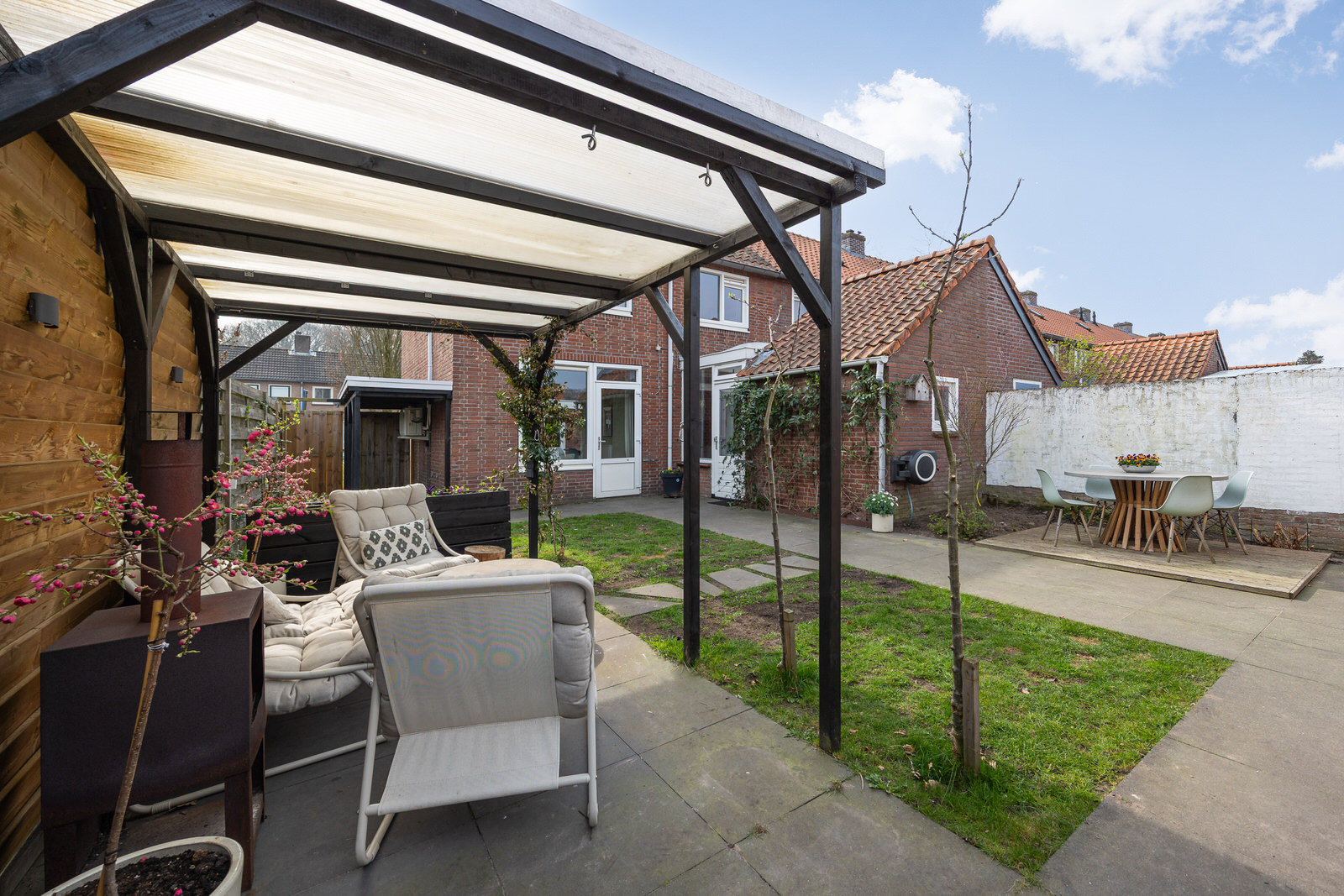 De achtertuin is verzorgd aangelegd en beschikt over een fijne overkapping, waardoor je hier ook buiten het zomerseizoen prettig kunt zitten. Er is een mooie combinatie van bestrating, groen en praktische buitenruimte. Ook een buitenkraan is aanwezig. Achter in de tuin staat een vrijstaande garage, die uitstekend geschikt is voor opslag, hobby of het stallen van fietsen en spullen. Daarnaast maakt de hoekligging dat het perceel ruim en prettig aanvoelt.