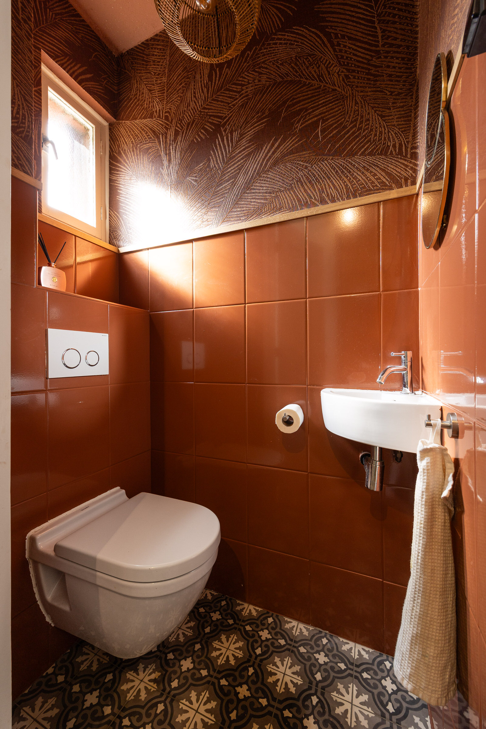 De toiletruimte heeft een eigen, karaktervolle uitstraling. Daarmee is het geen standaard ruimte geworden, maar juist een plek met een eigen sfeer.