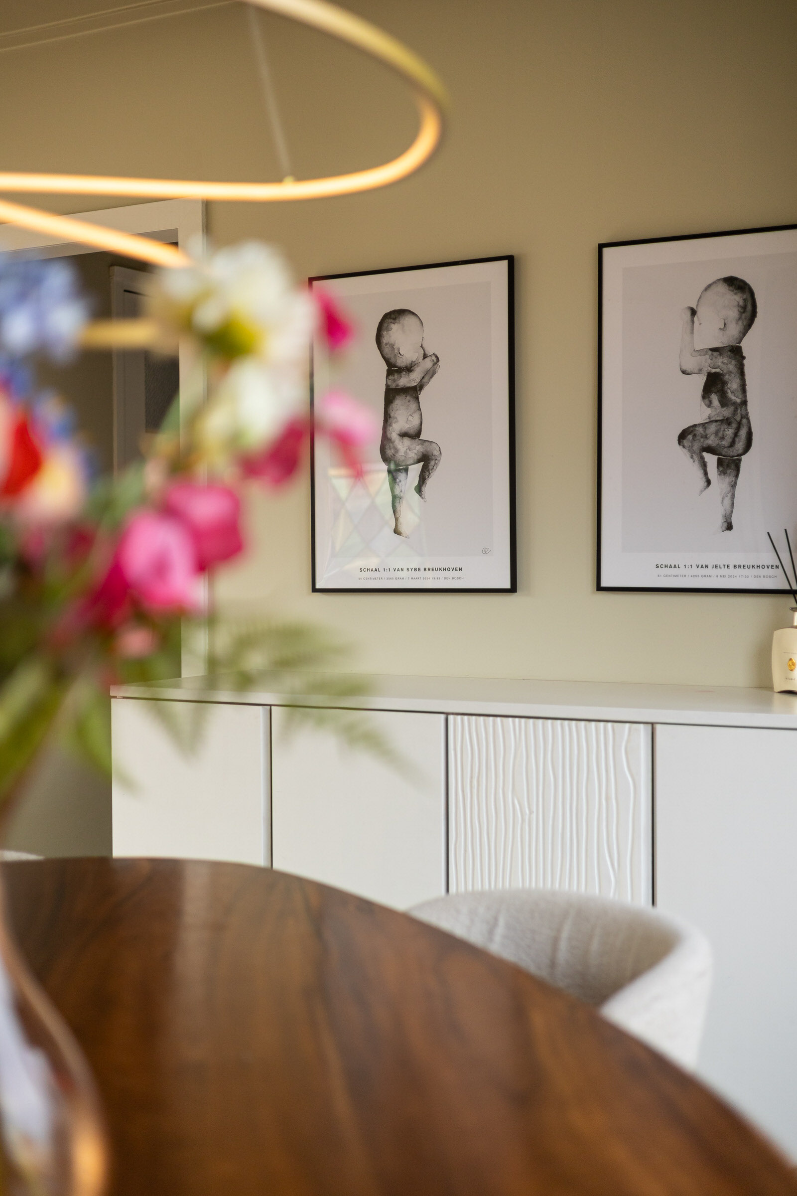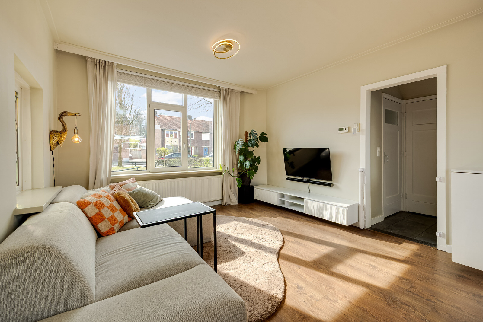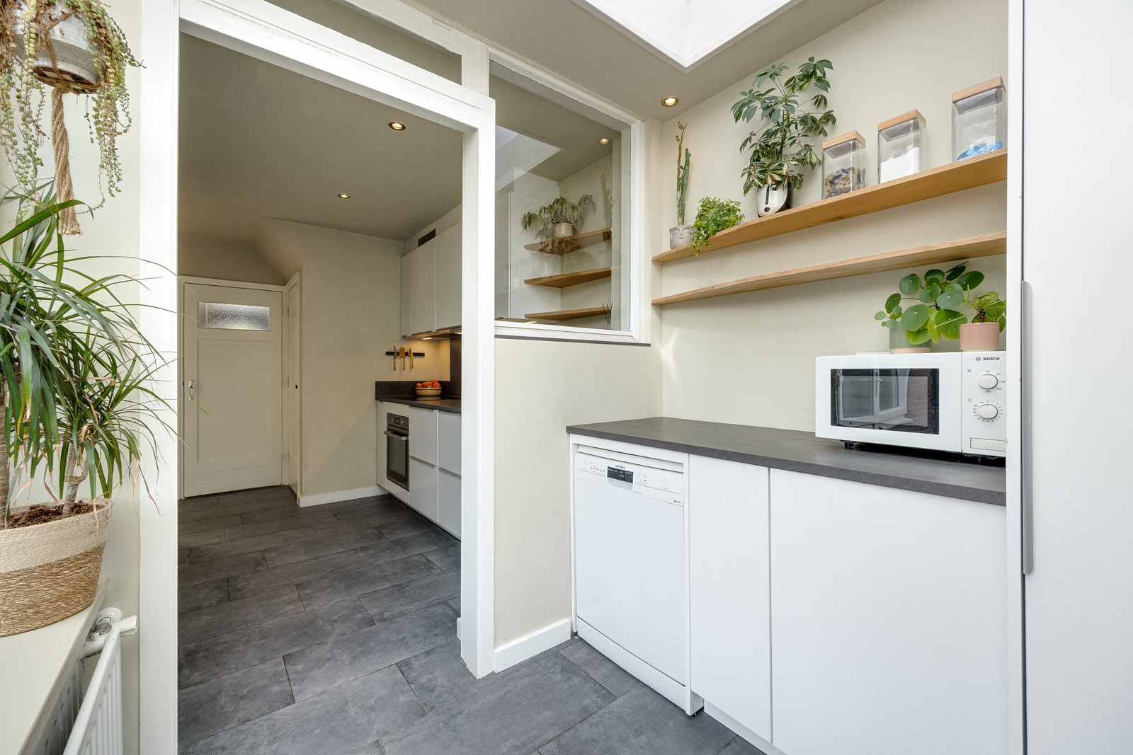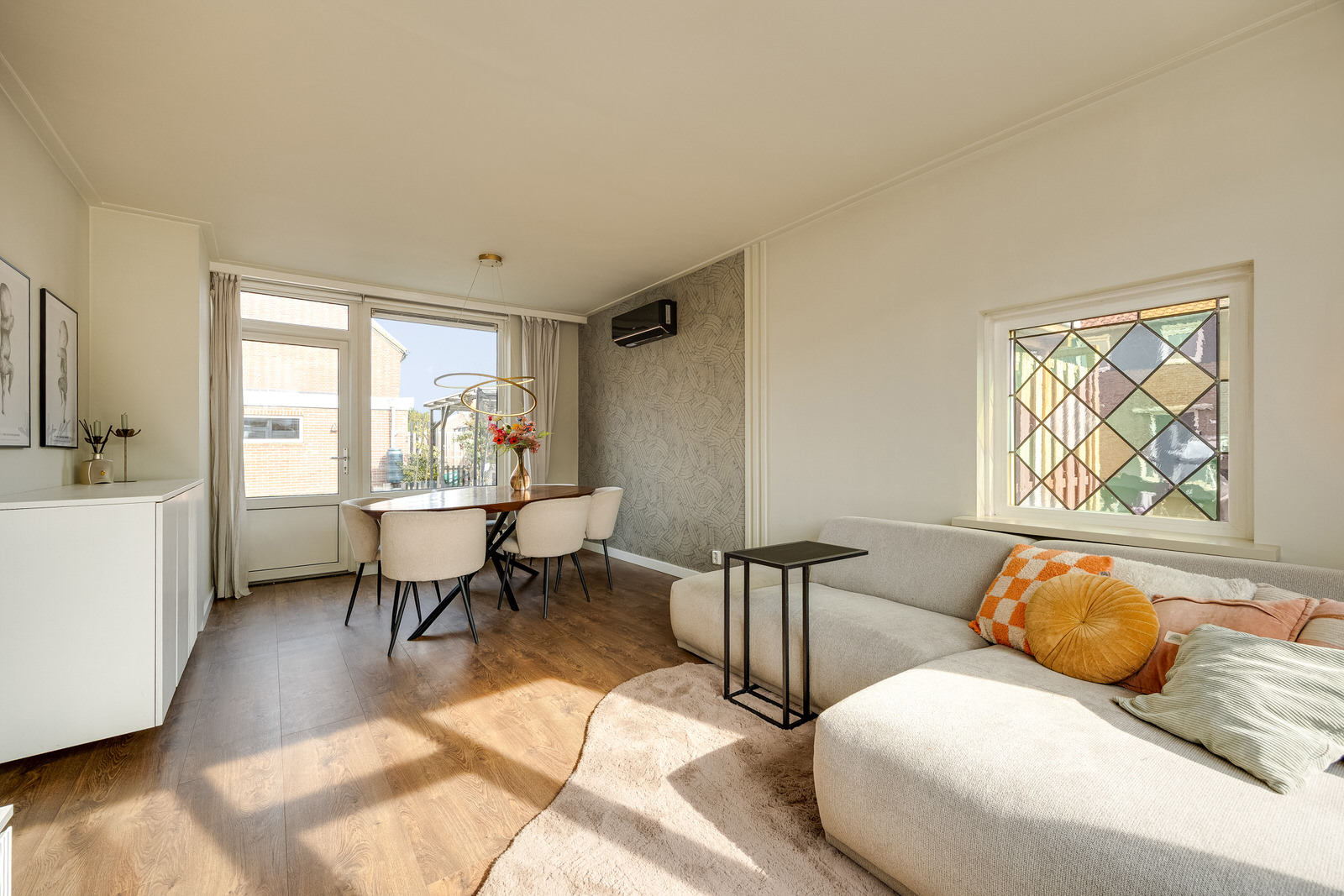 De woonkamer is heerlijk licht dankzij de grote raampartijen aan voor- en achterzijde. De ruimte biedt voldoende plaats voor zowel een comfortabele zithoek als een royale eethoek. De afwerking is verzorgd en eigentijds, met onder meer een laminaatvloer en strak afgewerkte wanden. De airconditioning uit 2023 is hier een prettig extra pluspunt: comfortabel in warme periodes en aangenaam voor het binnenklimaat. De woonkamer sluit mooi aan op de keuken, waardoor het leefgedeelte open en uitnodigend aanvoelt. Via een loopdeur is er direct toegang tot de achtertuin.