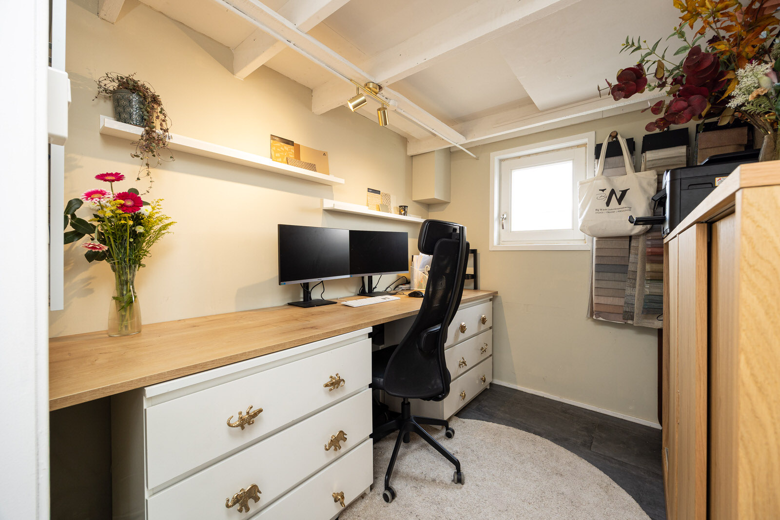 - De begane grond beschikt over een praktische werkruimte/kantoor, ideaal voor thuiswerken, hobby of extra bergruimte.