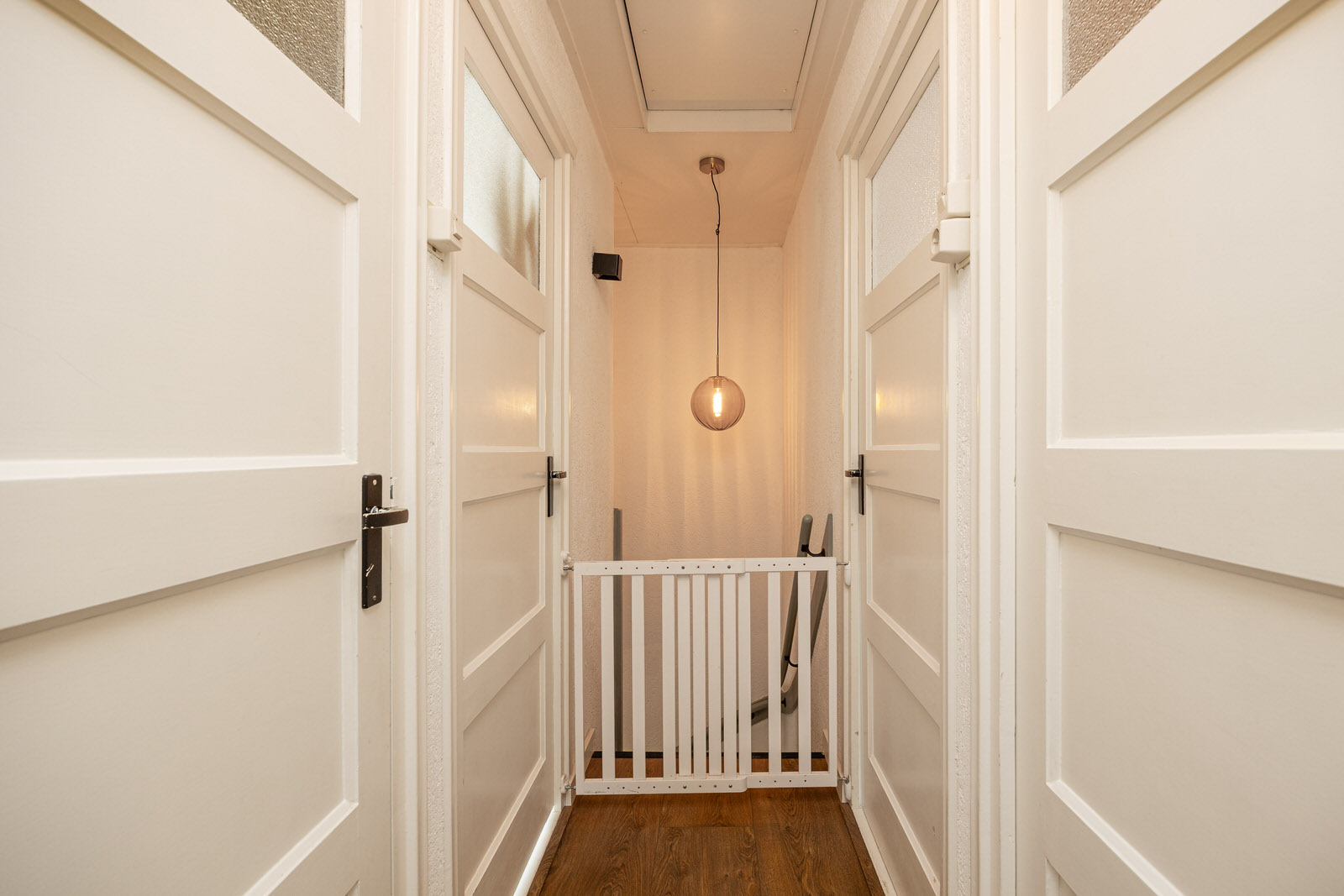 De overloop geeft toegang tot drie slaapkamers en de badkamer. Via een vlizotrap is daarnaast de bergzolder bereikbaar.
