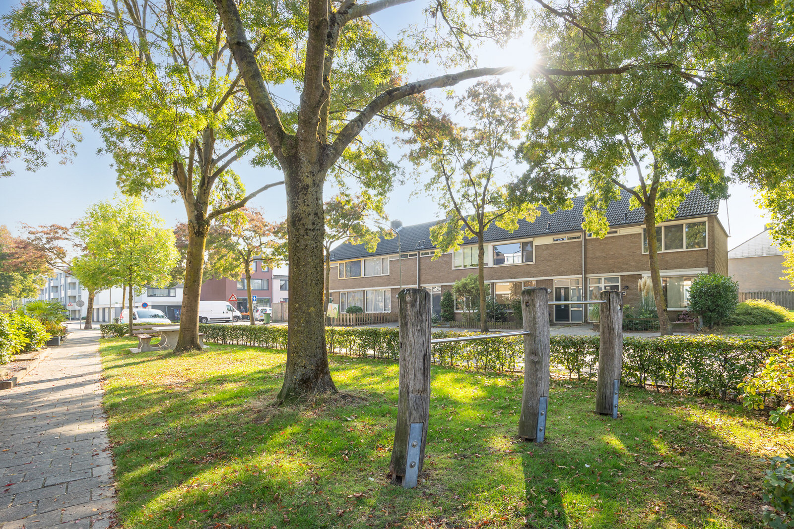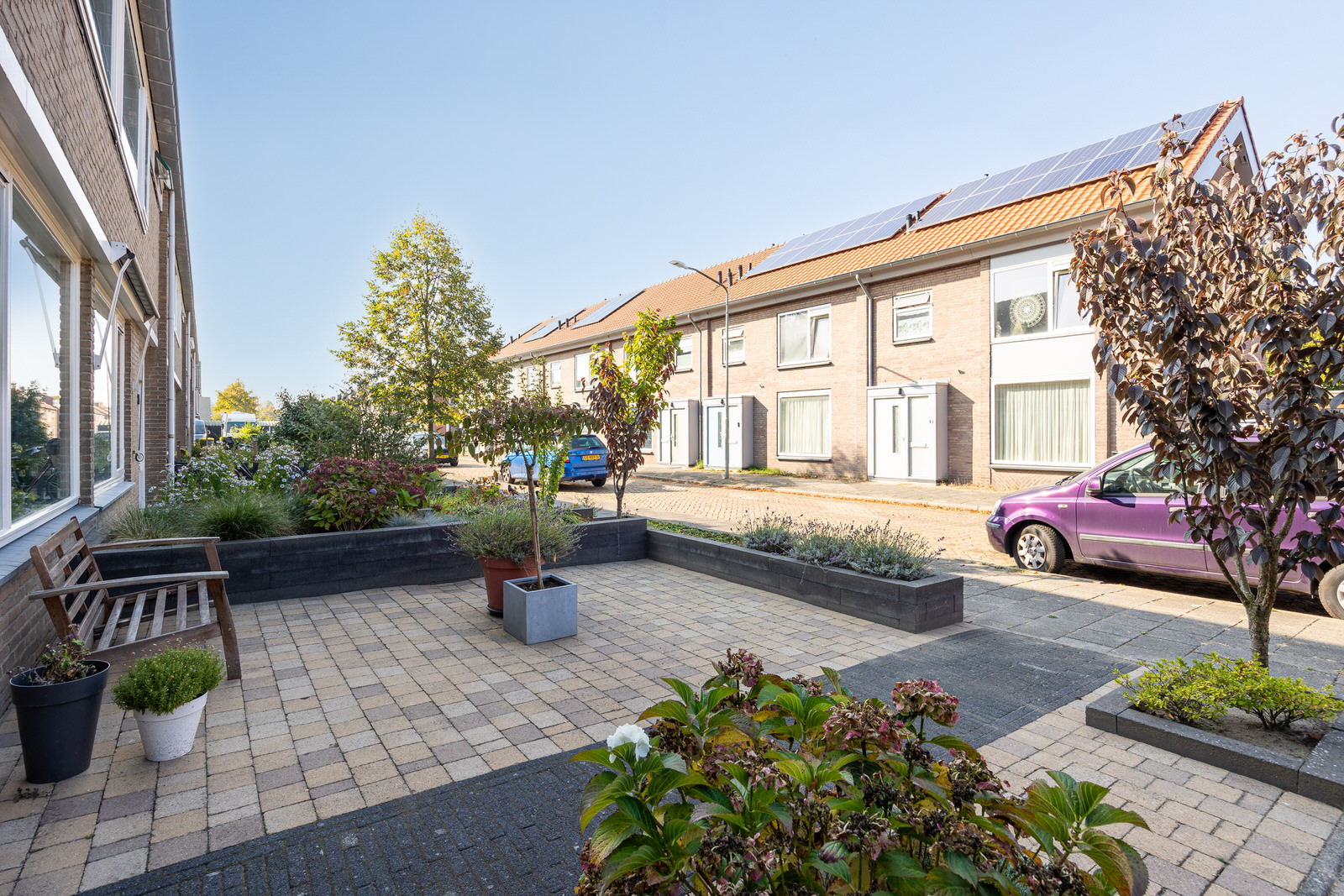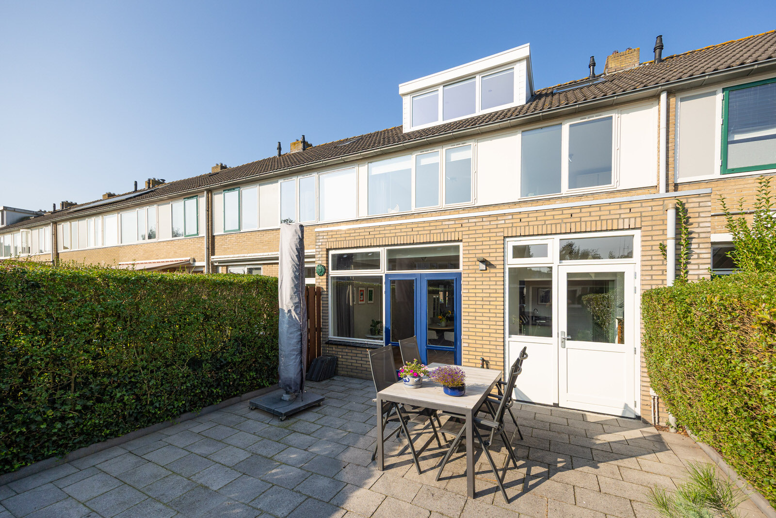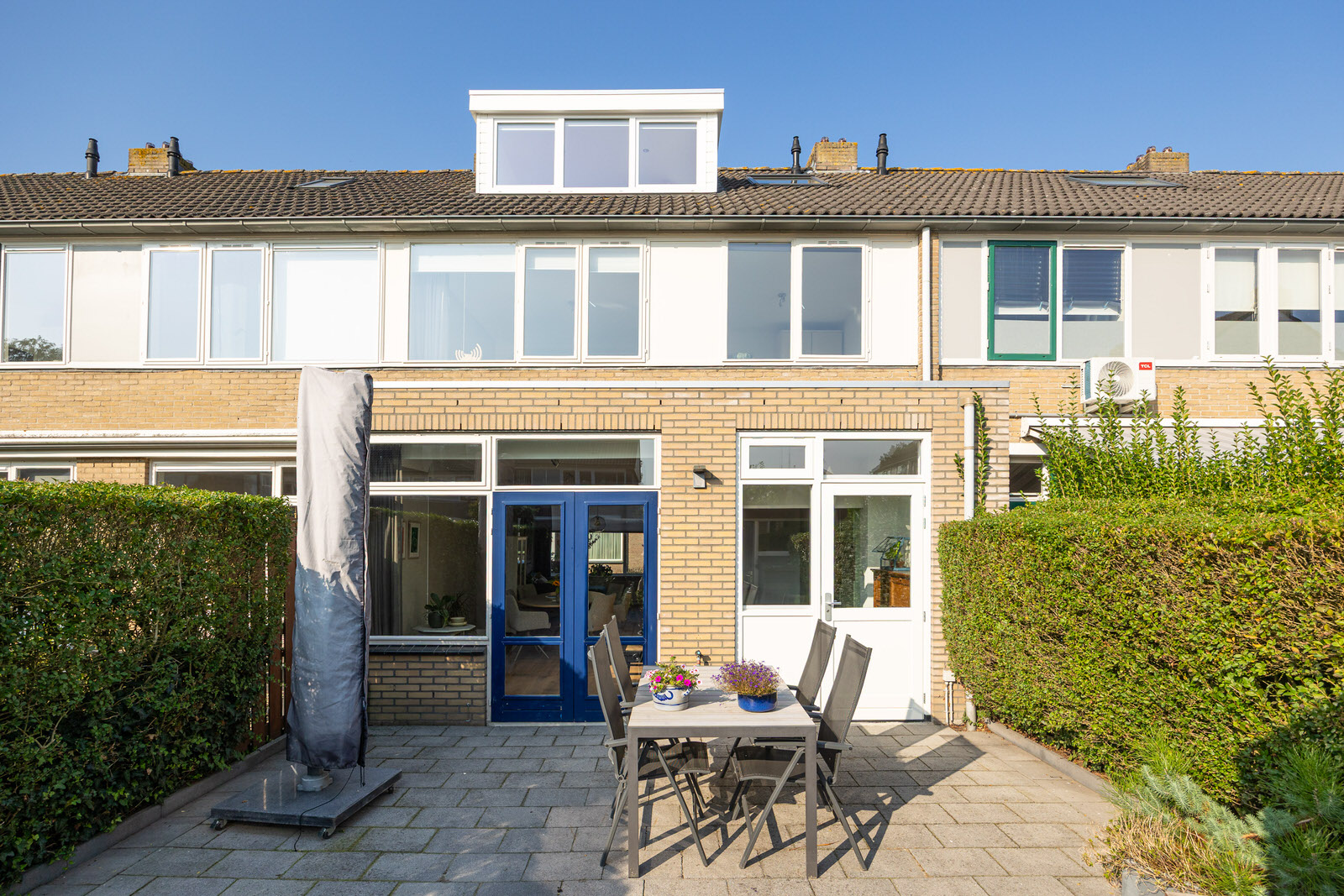 De achtertuin is diep, verzorgd aangelegd en gunstig gelegen op het oosten. Dankzij de combinatie van sierbestrating, groene hagen en voldoende ruimte voor een eettafel of loungeset is het een prettige plek om buiten te zijn. Door de diepte van de tuin is er altijd een beschutte plek in de zon of schaduw te vinden. Via de achterom is de tuin gemakkelijk bereikbaar.