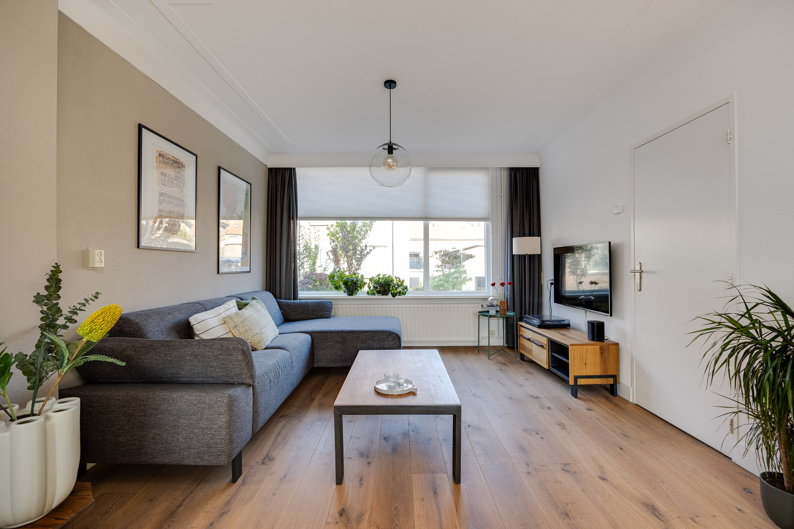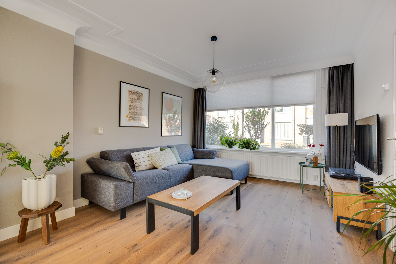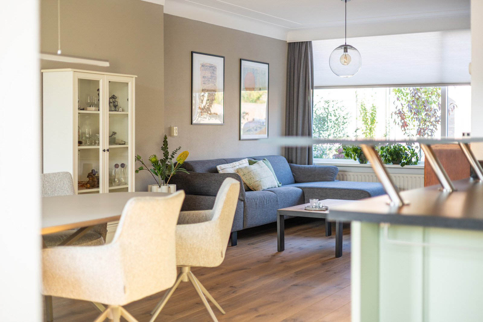 - Lichte woonkamer met houten vloer en openslaande tuindeuren