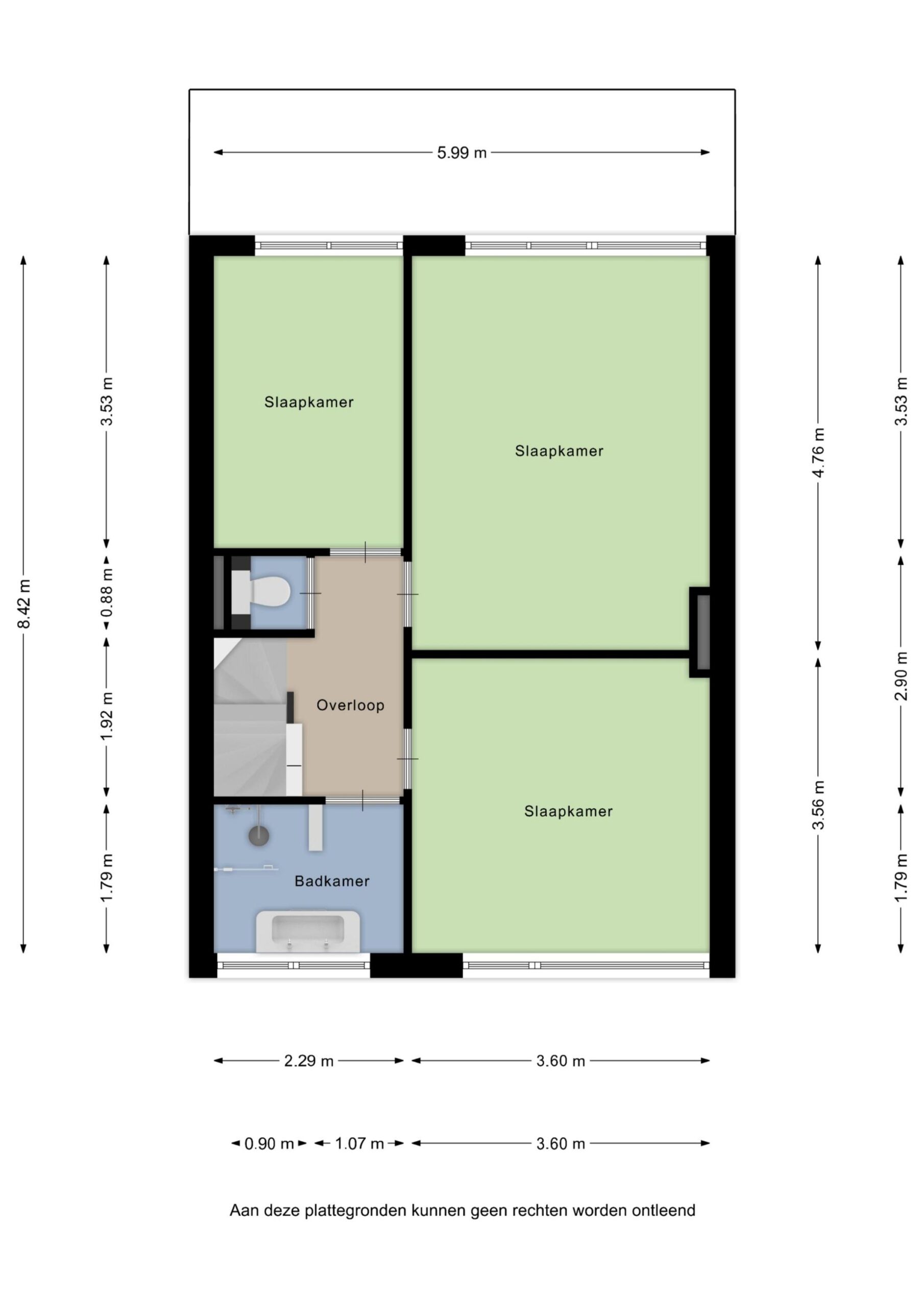 De overloop geeft toegang tot drie slaapkamers, de badkamer en separate toiletruimte.