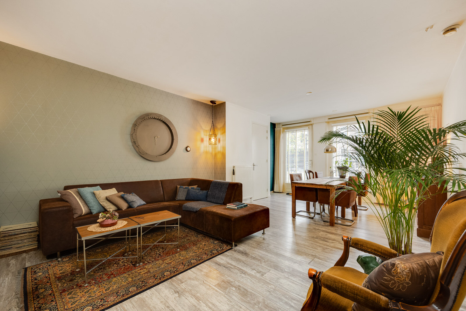 9A heeft een eigen entree aan de straatzijde, waar je direct binnenkomt in de woonkamer. De begane grond bestaat uit een royale leefruimte met grote ramen aan de voorzijde, waardoor de ruimte licht en uitnodigend aanvoelt. Deze verdieping is thans in gebruik als woonruimte, met een zitgedeelte aan de achterzijde en een eetgedeelte aan de voorzijde.