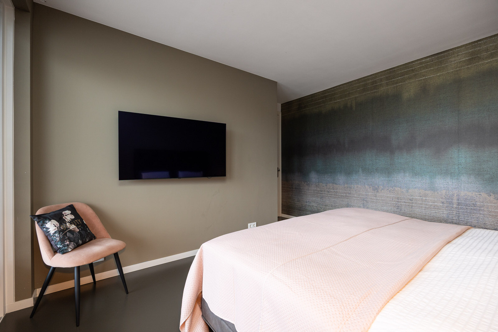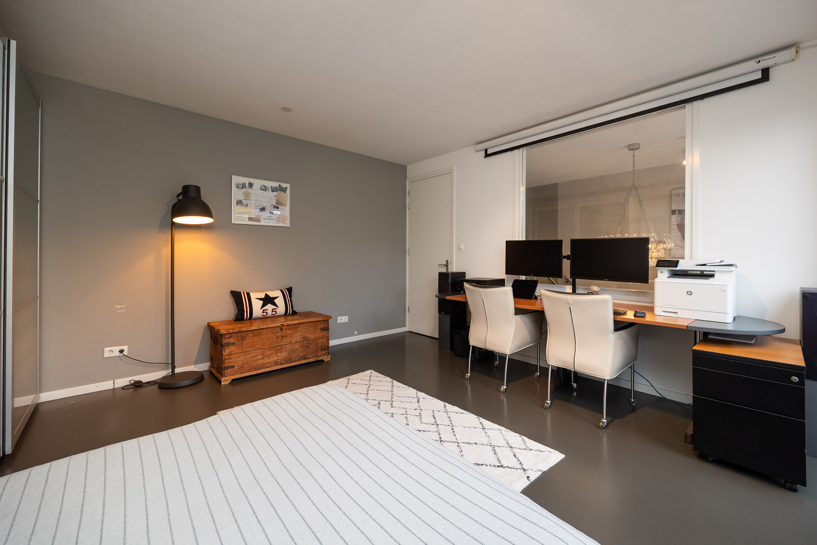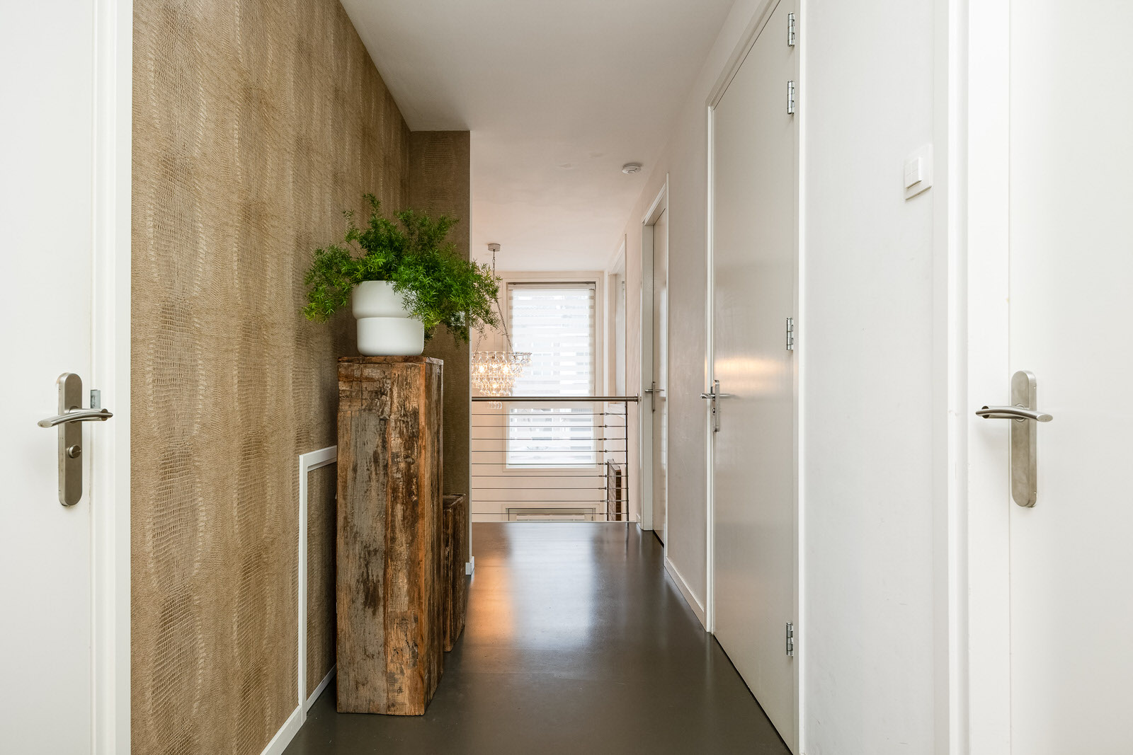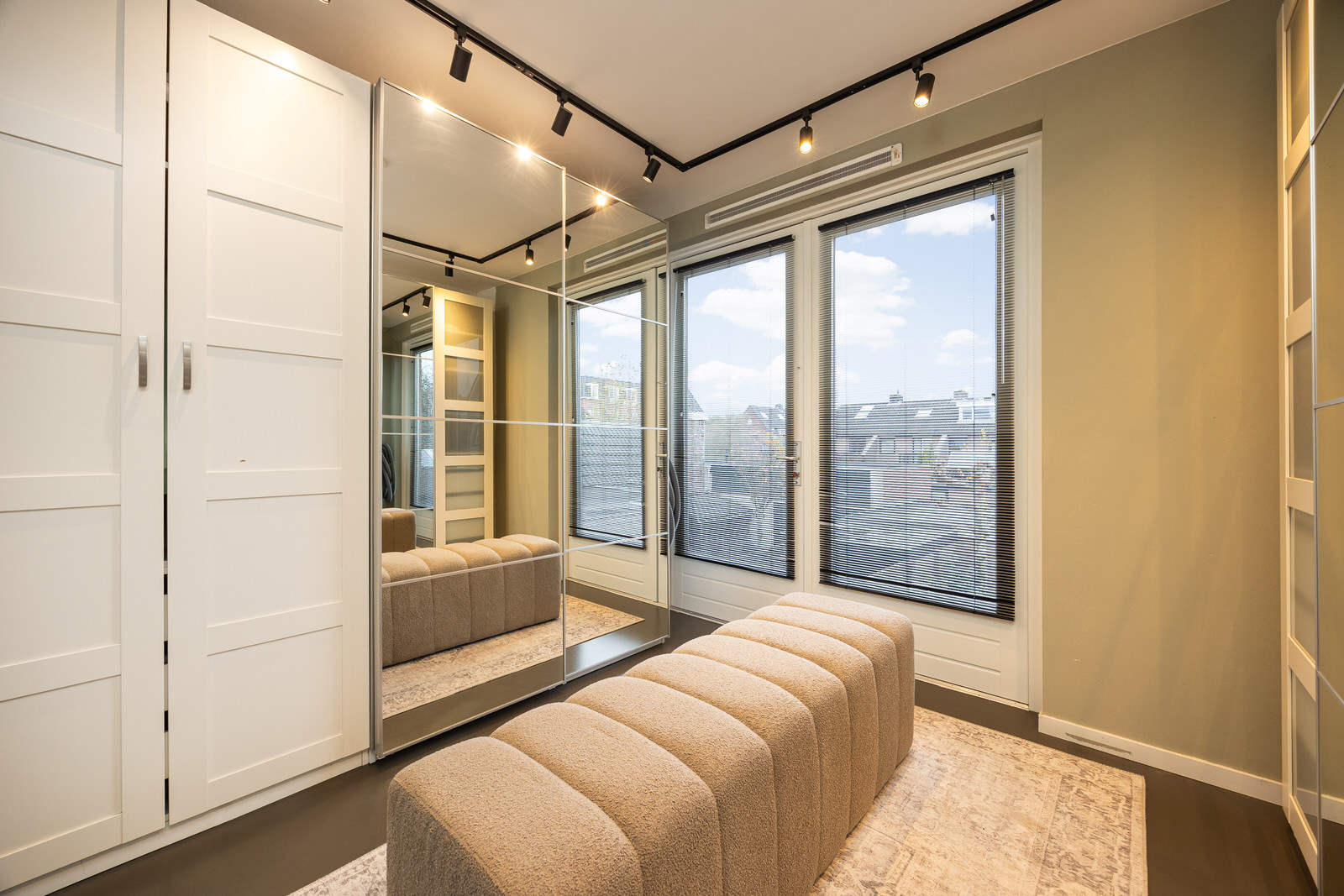 Op deze verdieping bevinden zich drie volwaardige slaapkamers. Alle kamers zijn verzorgd afgewerkt. De slaapkamers aan de achterzijde zijn voorzien van openslaande deuren richting het platte dak. De grote slaapkamer aan de achterzijde is uitgerust met een LG-airconditioning, met voldoende capaciteit om meerdere ruimtes op de verdieping te koelen of te verwarmen. De slaapkamer aan de voorzijde beschikt daarnaast over elektrische rolluiken die via domotica bedienbaar zijn. In het gehele huis is een hoogwaardig domoticasysteem aanwezig van het merk Eaton, waarmee verwarming, verlichting en rolluiken zeer eenvoudig kunnen worden aangestuurd.