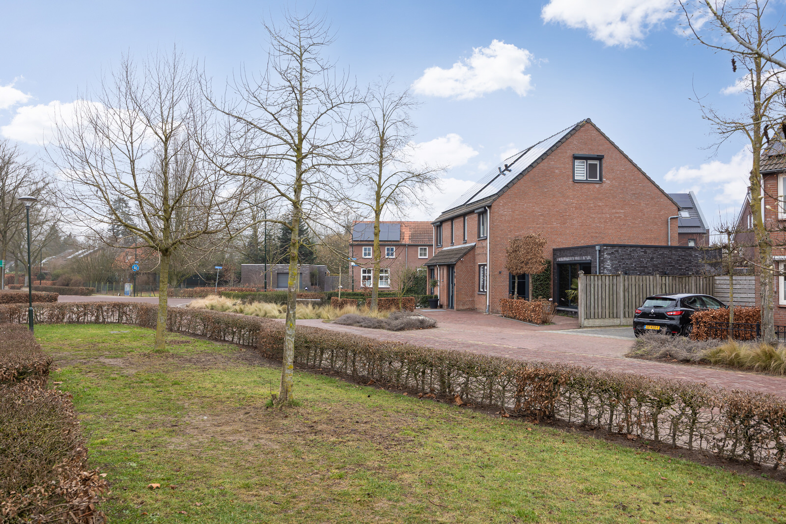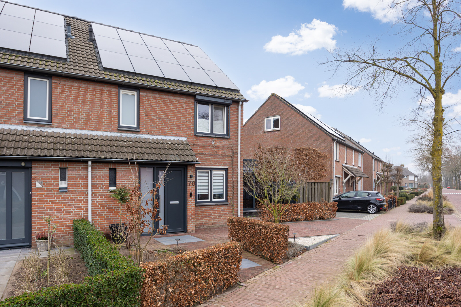 Aan de voorzijde van de woning is parkeergelegenheid op eigen terrein aanwezig, waardoor je de auto comfortabel op eigen grond kunt parkeren.