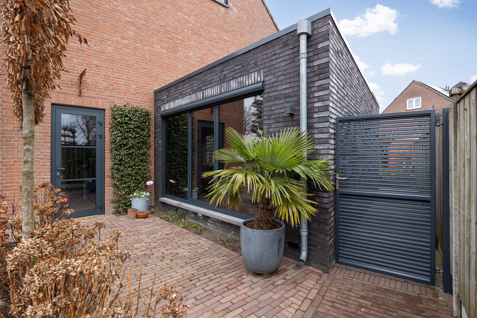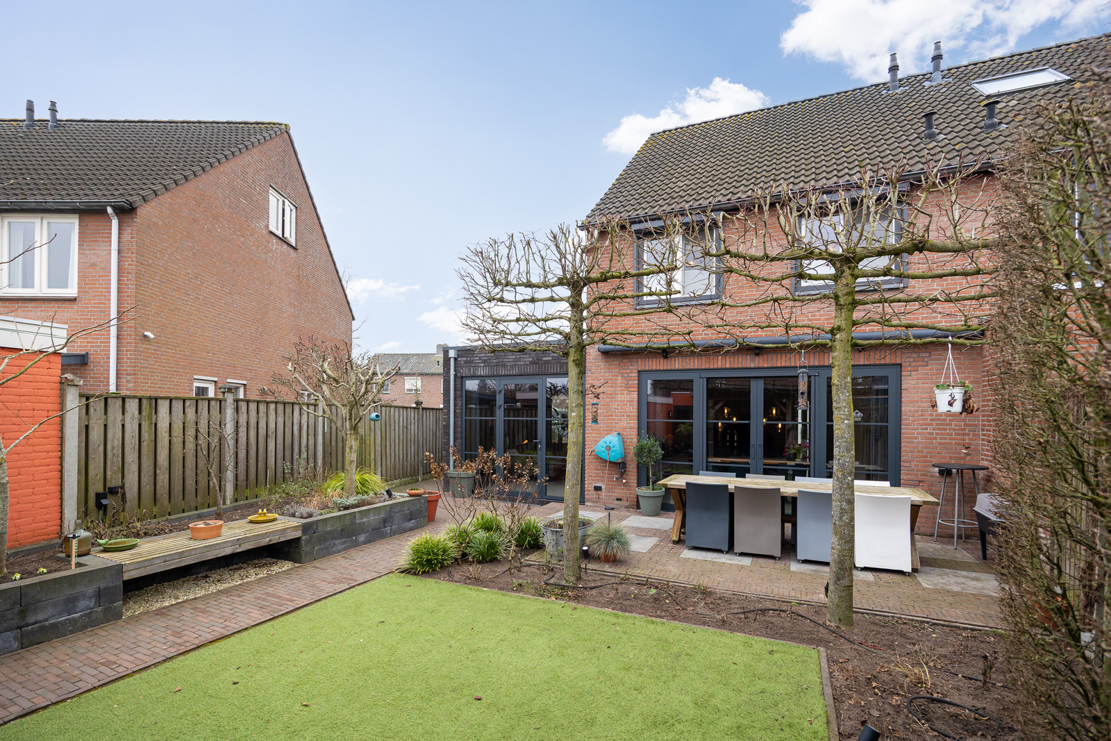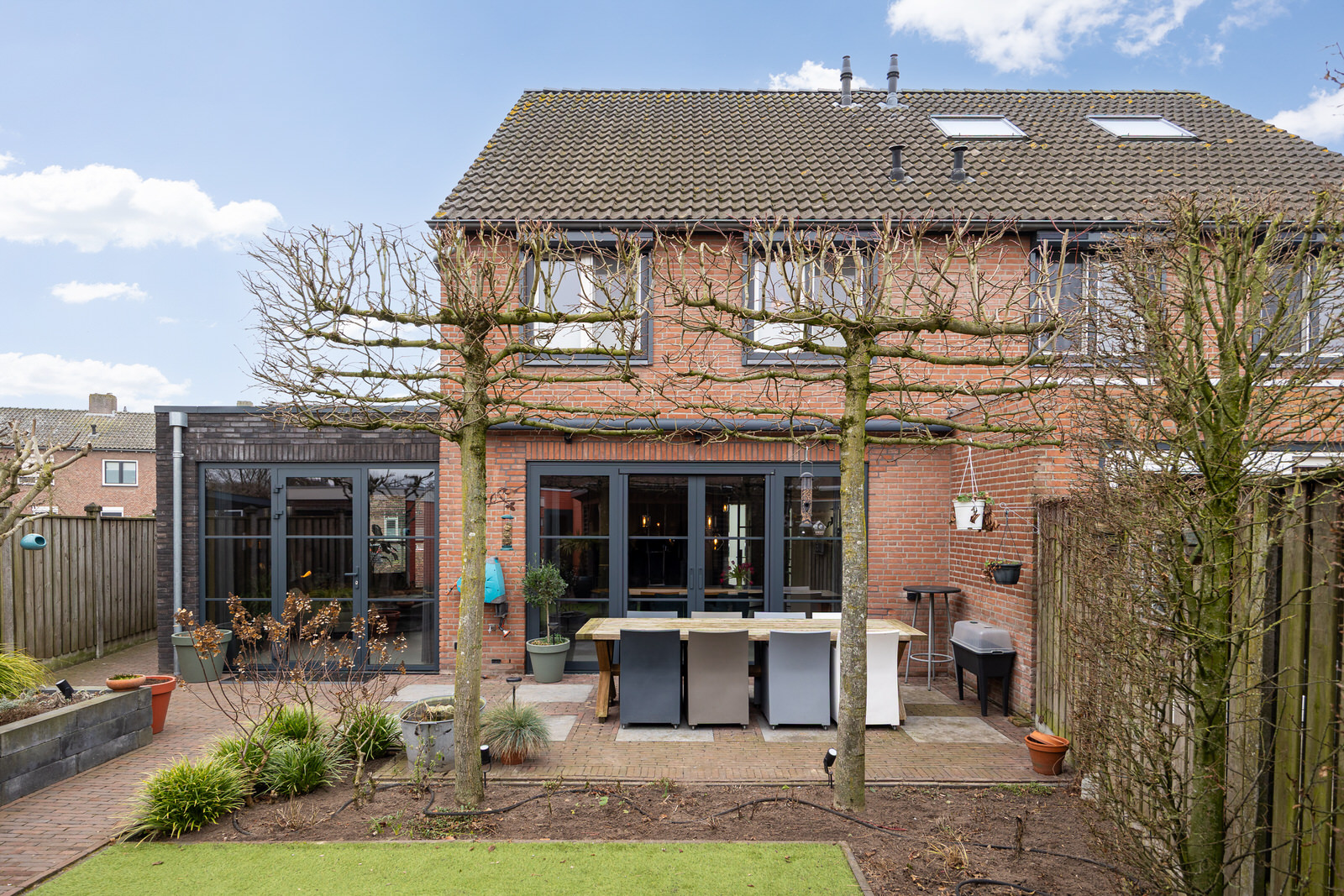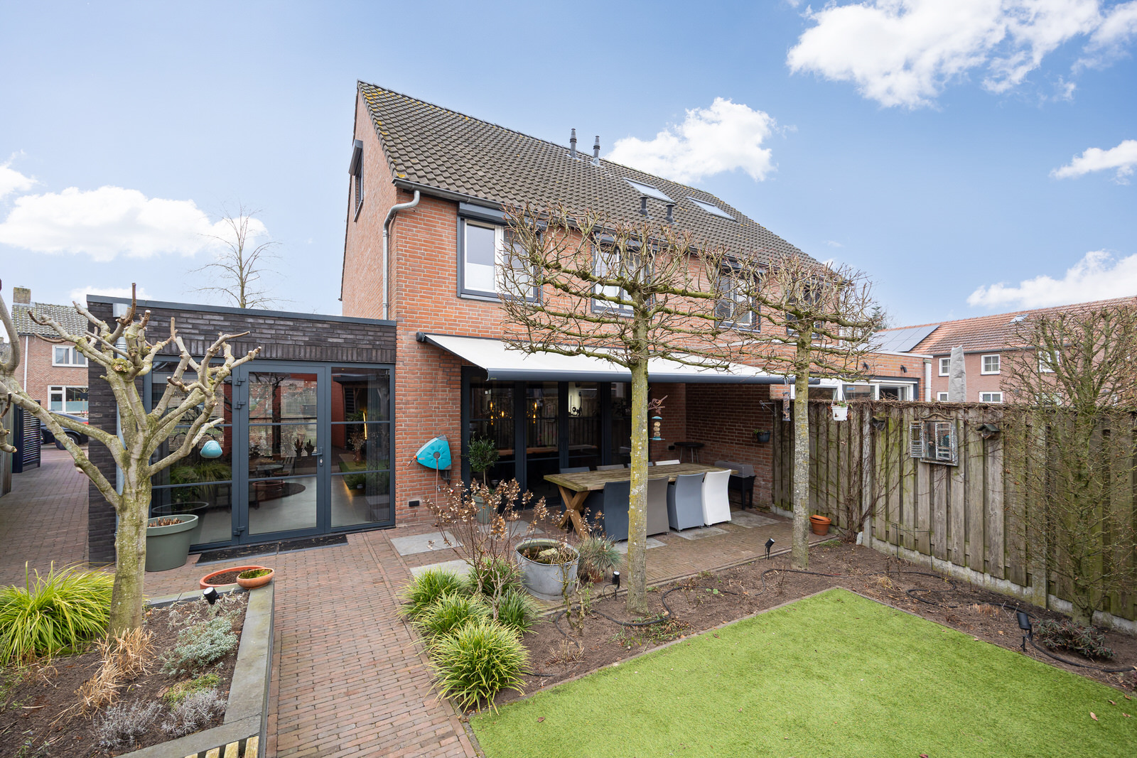- De achtergevel is in 2018 voorzien van een elektrisch bedienbare zonneluifel.