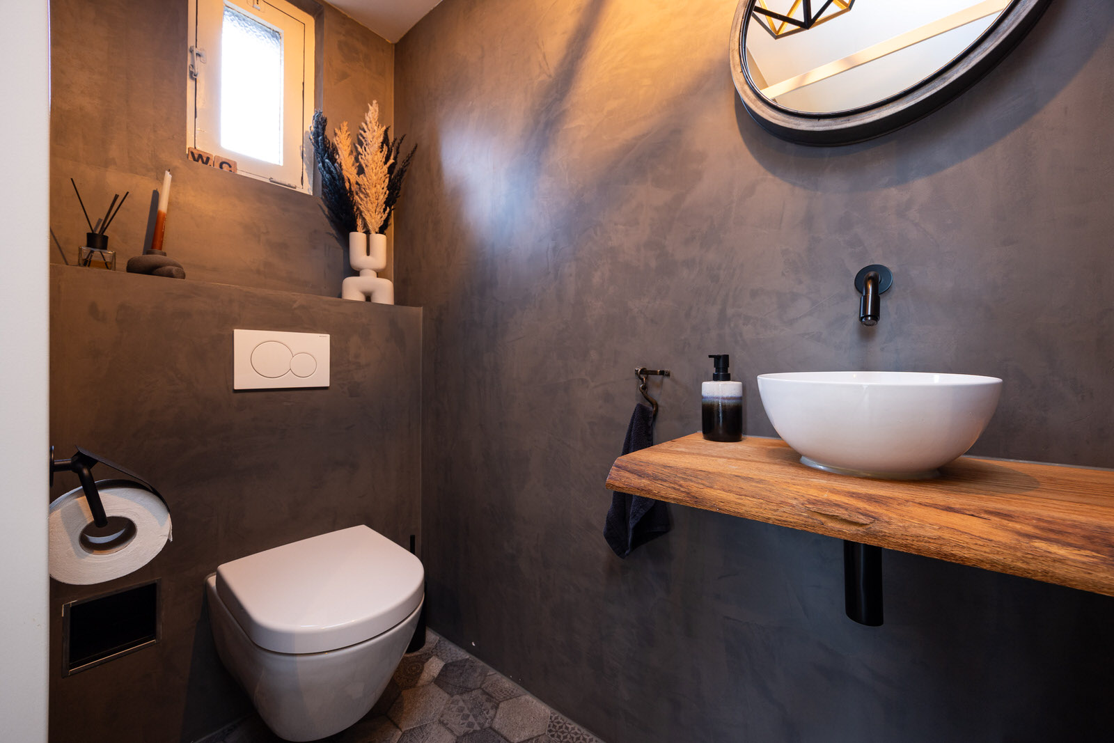 De toiletruimte op de begane grond is in 2018 vernieuwd en uitgevoerd met een zwevend closet en een fontein. De afwerking is modern en tijdloos.