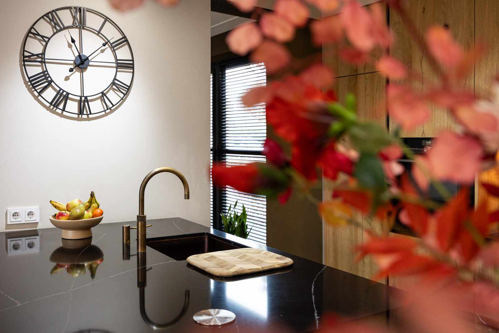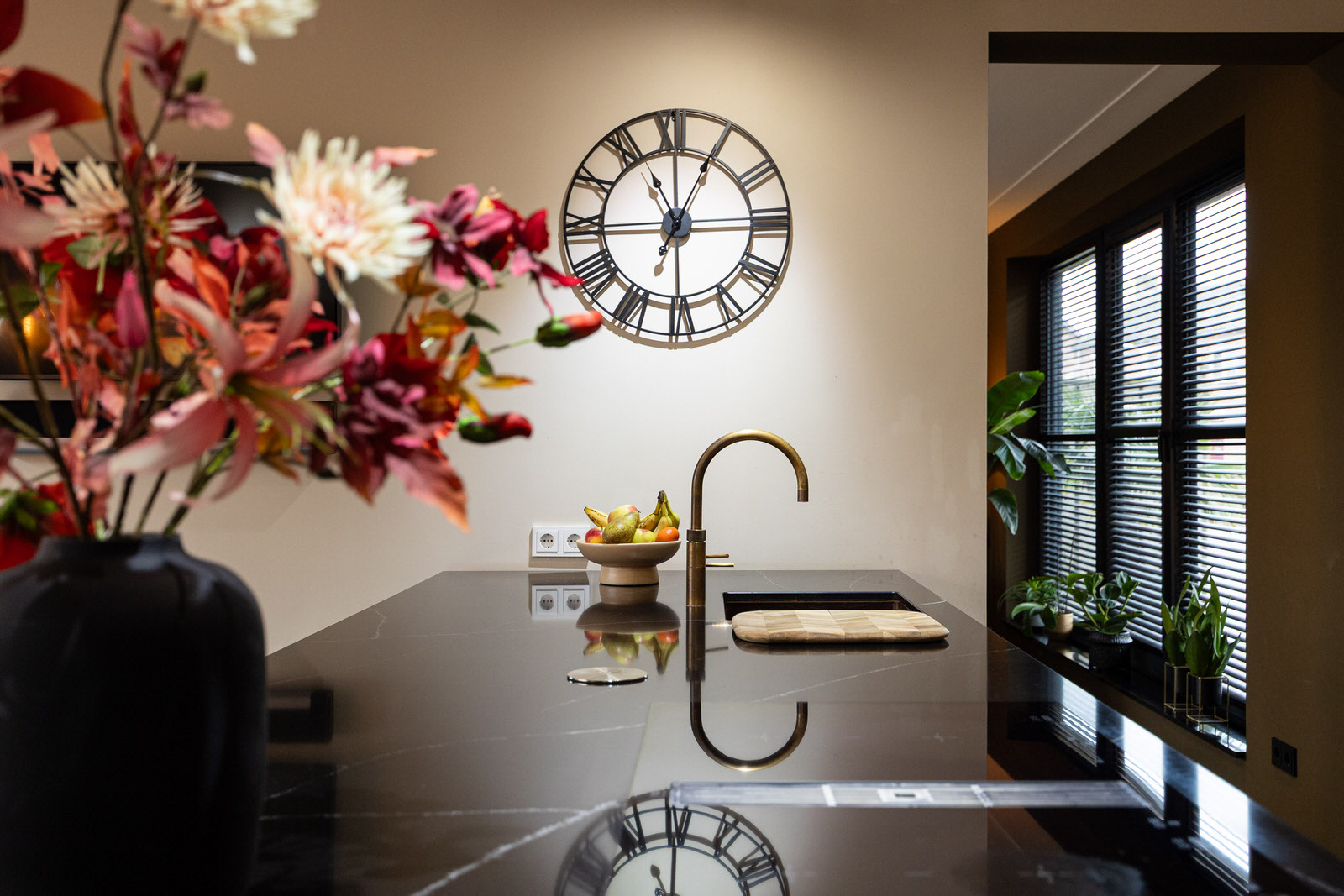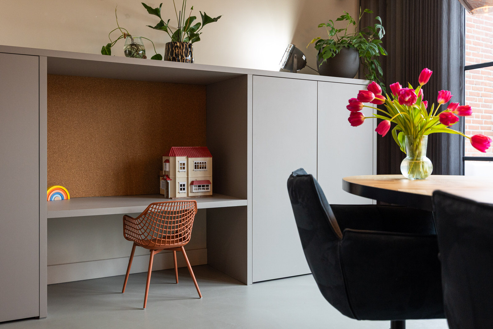 Aansluitend aan de hal bevindt zich de bijkeuken, een praktische en tegelijk fraai uitgevoerde ruimte die tijdens de verbouwing van de begane grond in 2021 is gerealiseerd. De bijkeuken is voorzien van maatwerkkasten, een vaste zitplek en een spoelbak met close-in boiler, wat deze ruimte multifunctioneel maakt. Ideaal voor jassen, schoenen en dagelijkse spullen, maar ook als extra werk- of voorbereidingsruimte. Dankzij de directe toegang naar buiten en de hoogwaardige afwerking is dit een ruimte die in het dagelijks gebruik echt meerwaarde biedt.