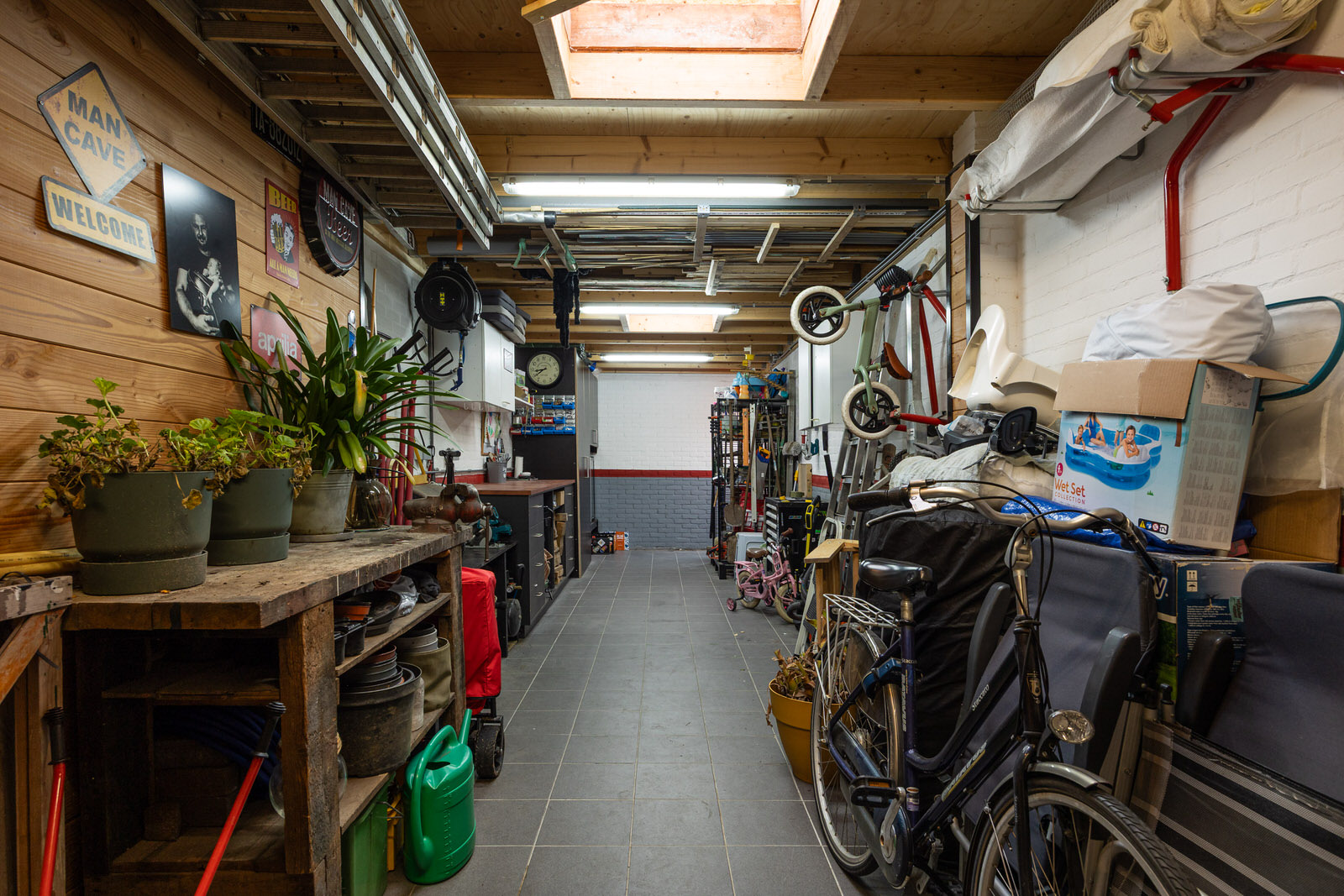De garage van circa 11,70 x 2,90 respectievelijk 2,60 meter is in 2020 verhoogd en verlengd en voorzien van een nieuw dak met dakisolatie. De ruimte is praktisch in gebruik en geschikt voor opslag, fietsen of hobby.