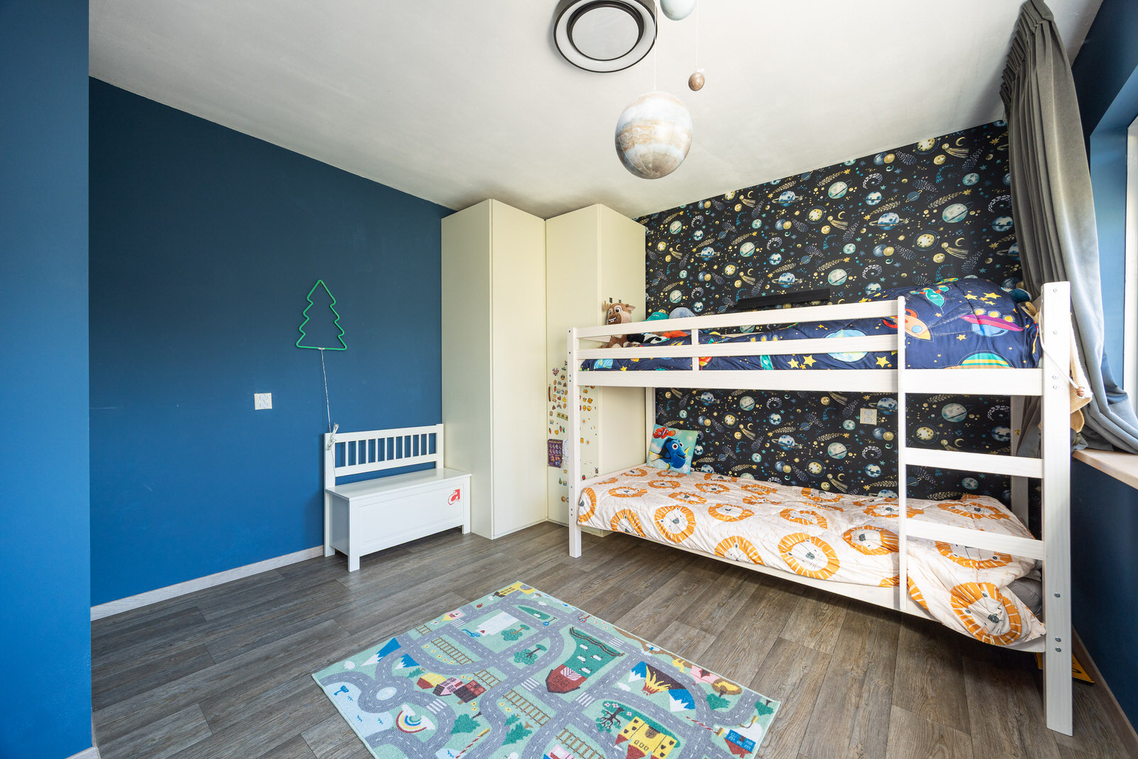 De overloop geeft toegang tot alle vertrekken op deze verdieping en de schuifdeur zorgt voor een efficiënte indeling.
