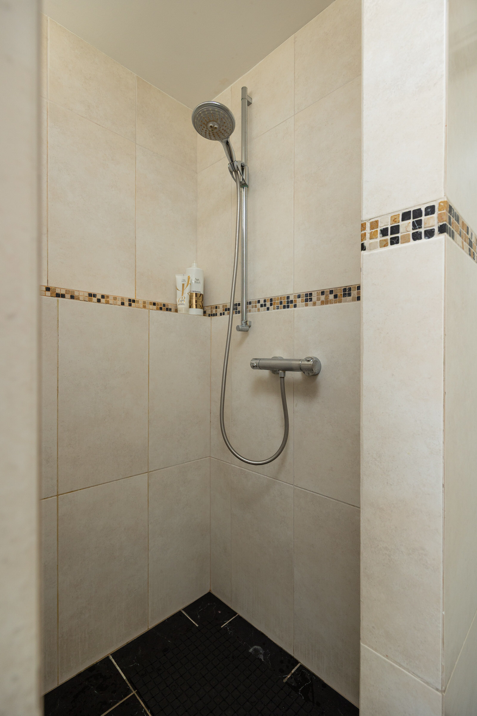 • Complete badkamer met ligbad en inloopdouche.
