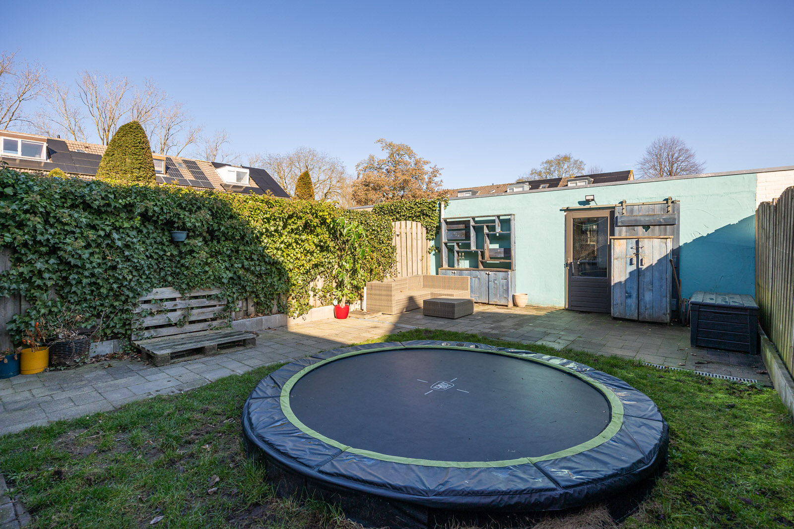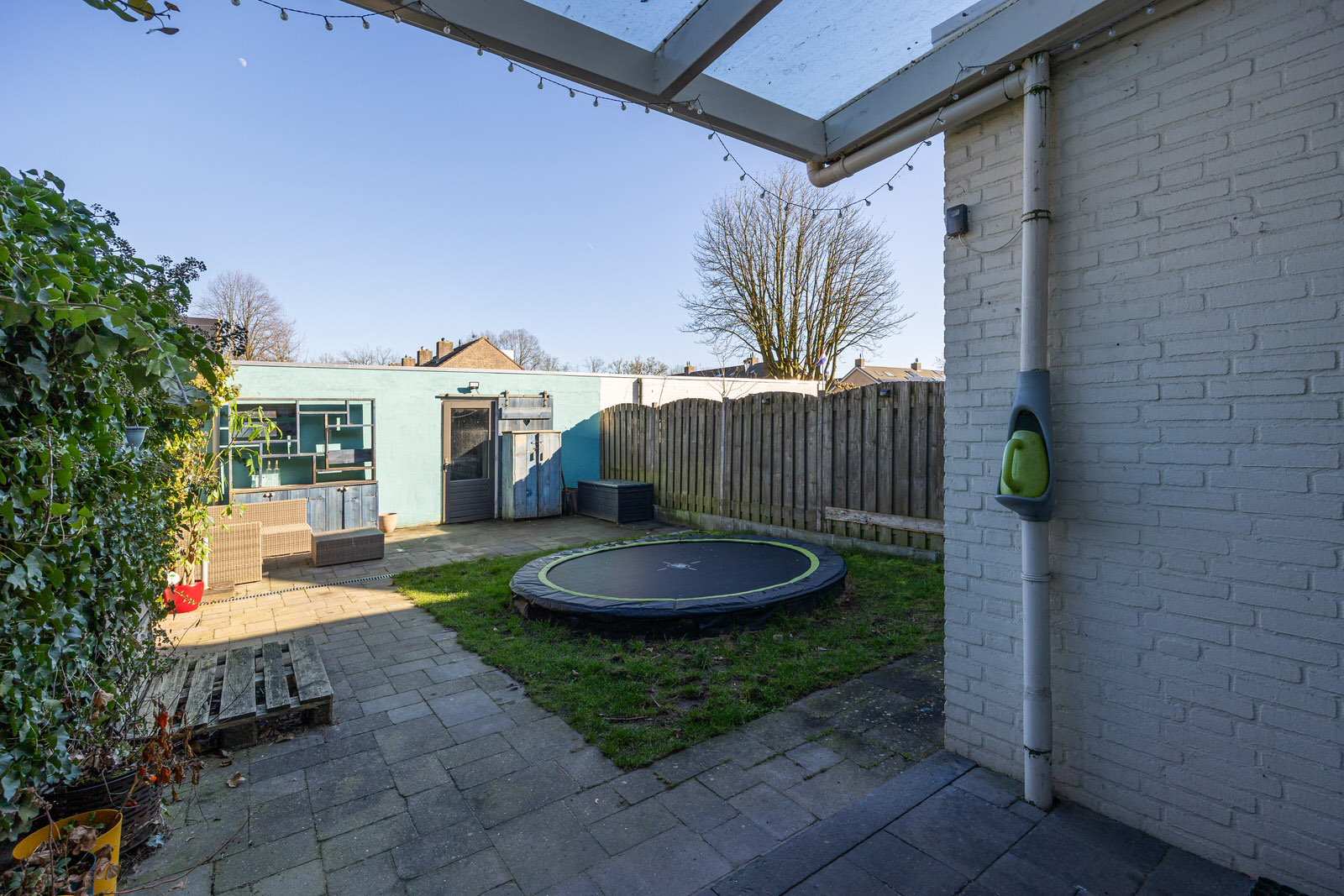 • Achtertuin met overkapping en praktische indeling.