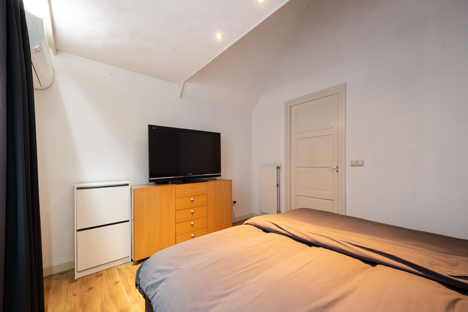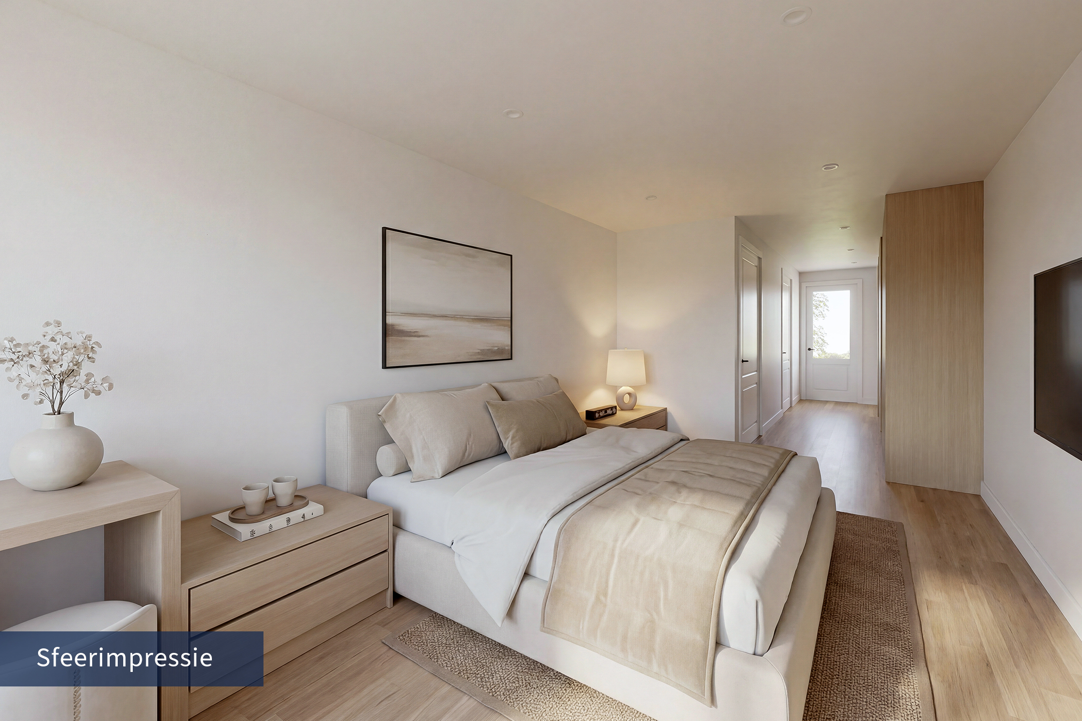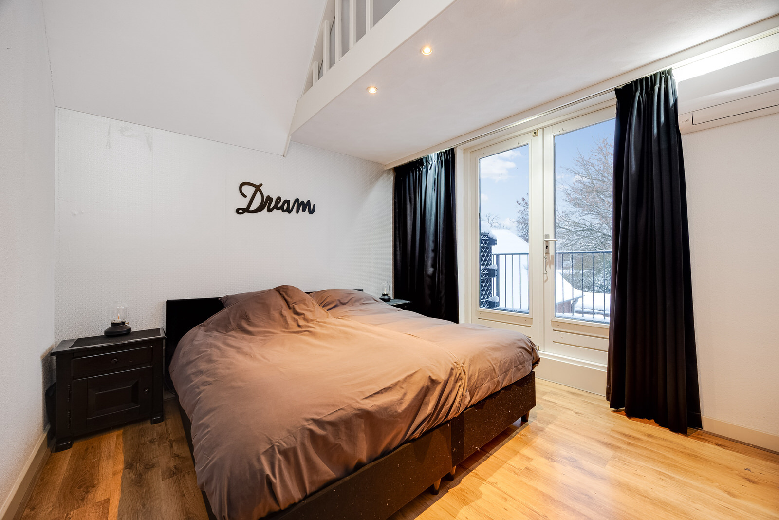 Aan de voorzijde bevindt zich een ruime slaapkamer met veel licht en een praktische indeling. De tweede slaapkamer ligt centraal in de woning en is eveneens goed bruikbaar als kinder- of werkkamer. De royale hoofdslaapkamer aan de achterzijde is uitgebouwd, voorzien van airconditioning en onderscheidt zich door het hoge plafond met vide en openslaande deuren naar het balkon. De vide geeft de slaapkamer een ruimtelijk karakter.