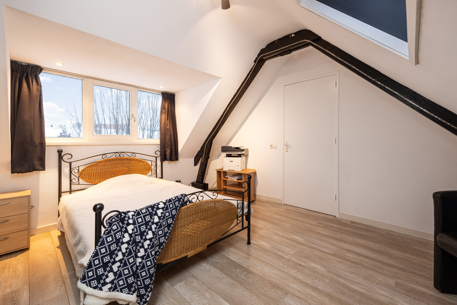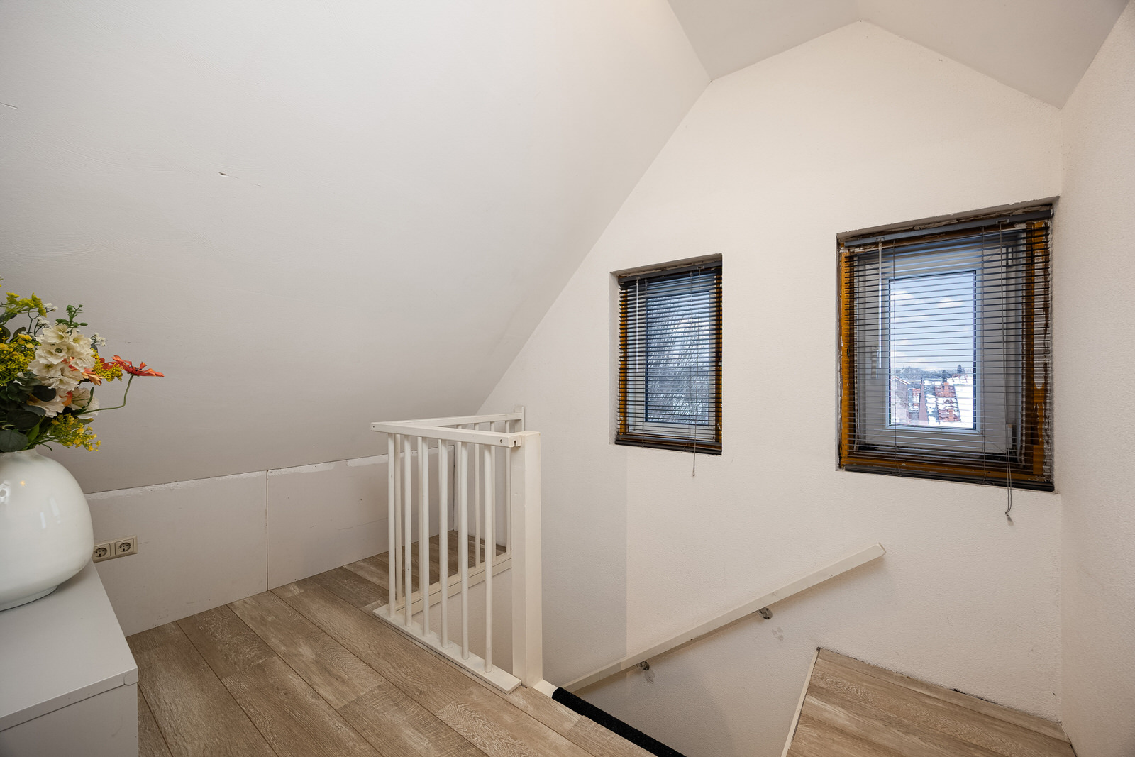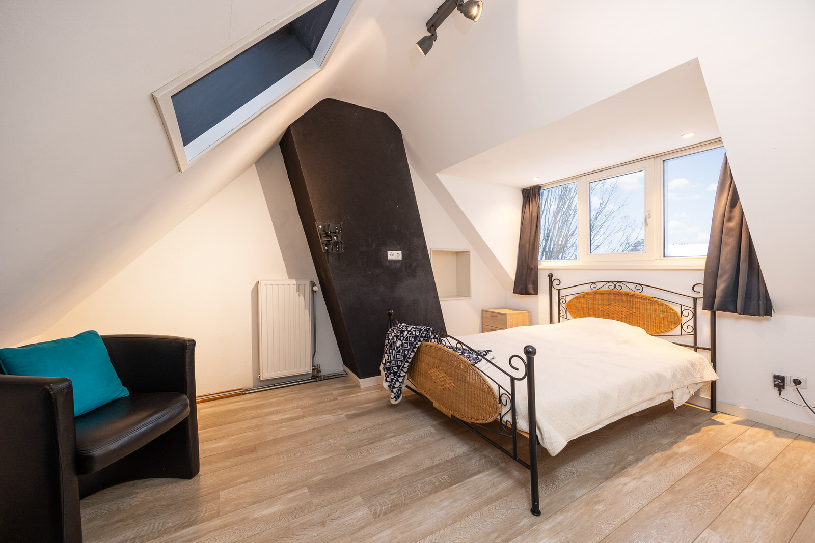 Via een vaste trap bereik je de tweede verdieping. Hier bevindt zich een ruime overloop met toegang tot een aparte bergruimte met de opstelling van de cv-installatie. Daarnaast is er een volwaardige vierde slaapkamer, voorzien van zowel een dakkapel aan de voorzijde als een dakraam aan de achterzijde.