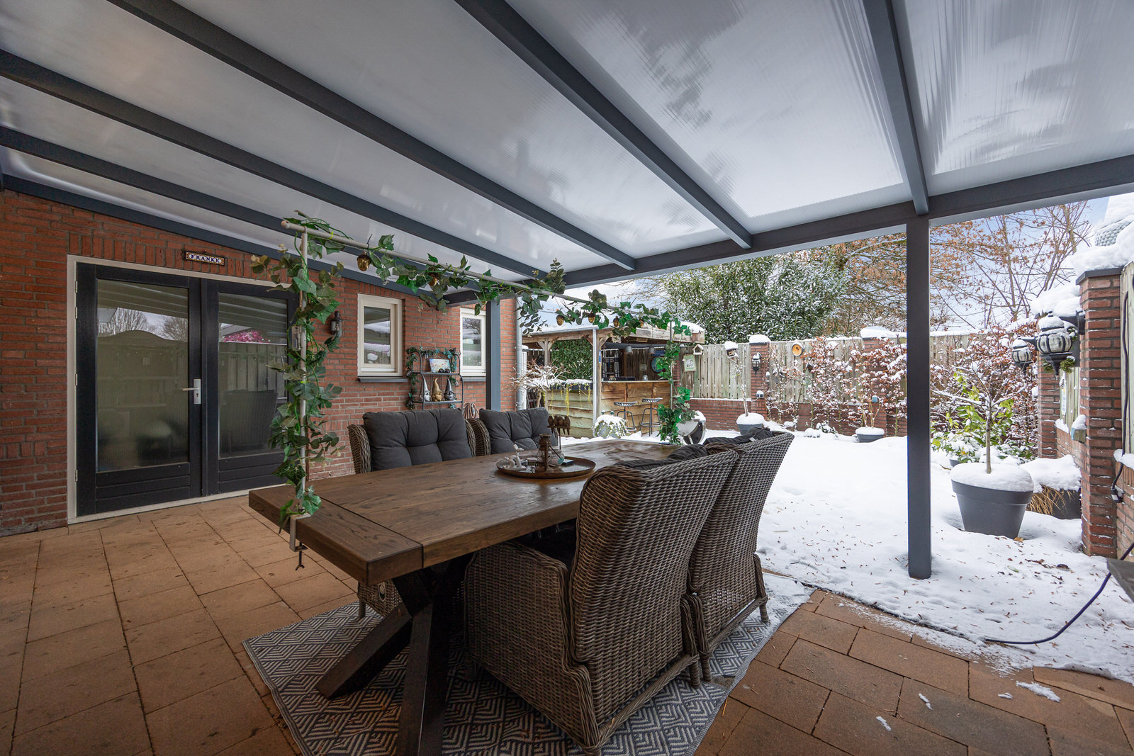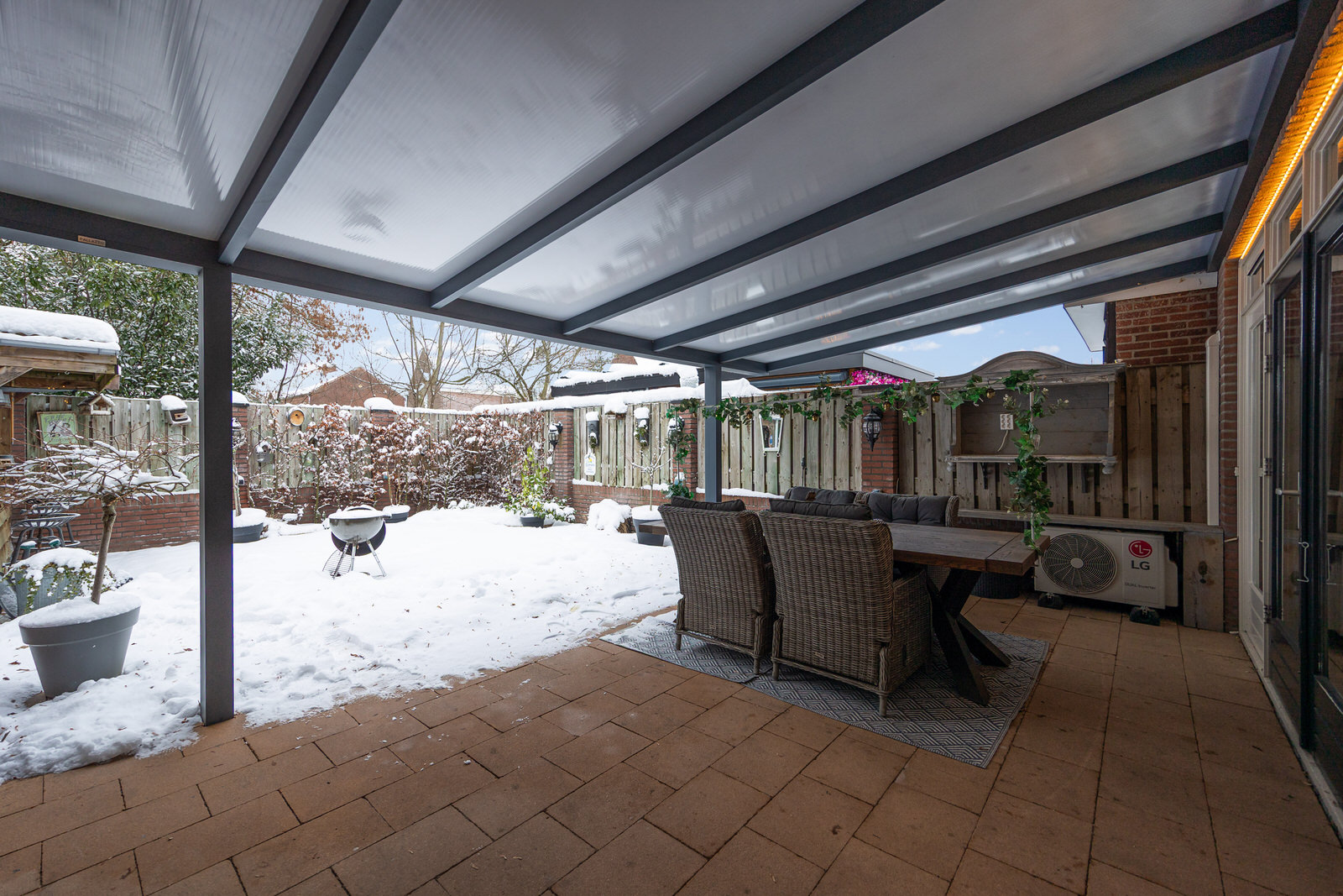 - Onderhoudsvriendelijke tuin met meerdere overkappingen en veel privacy.