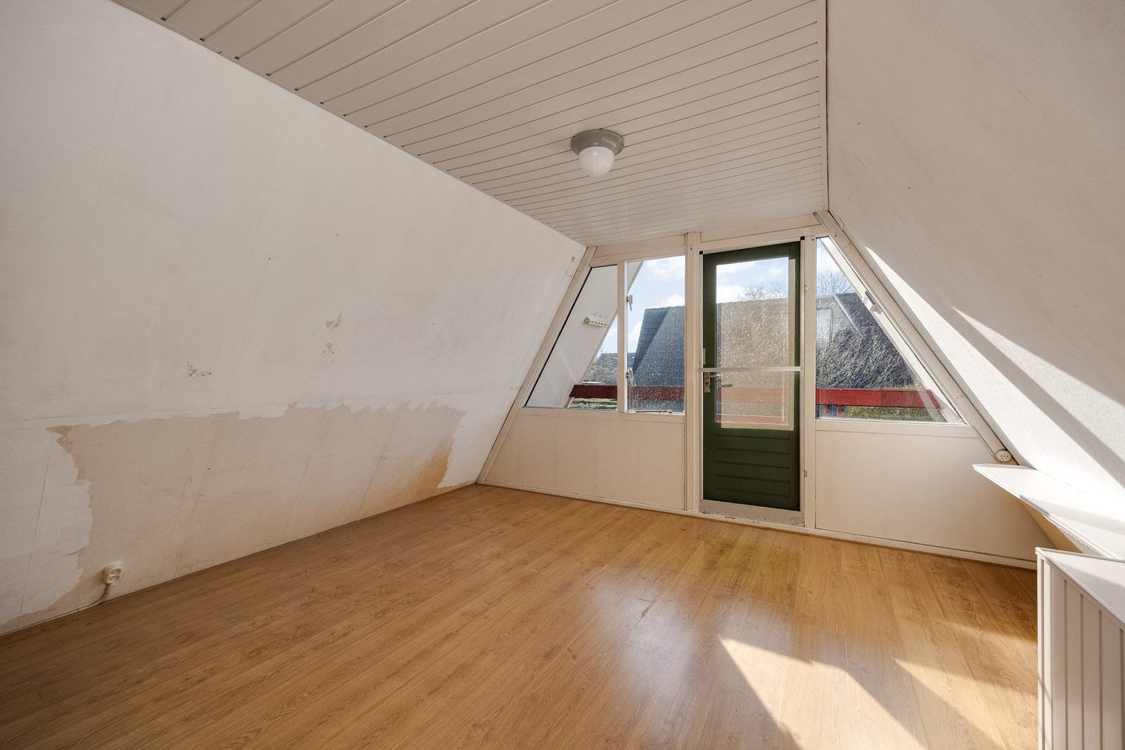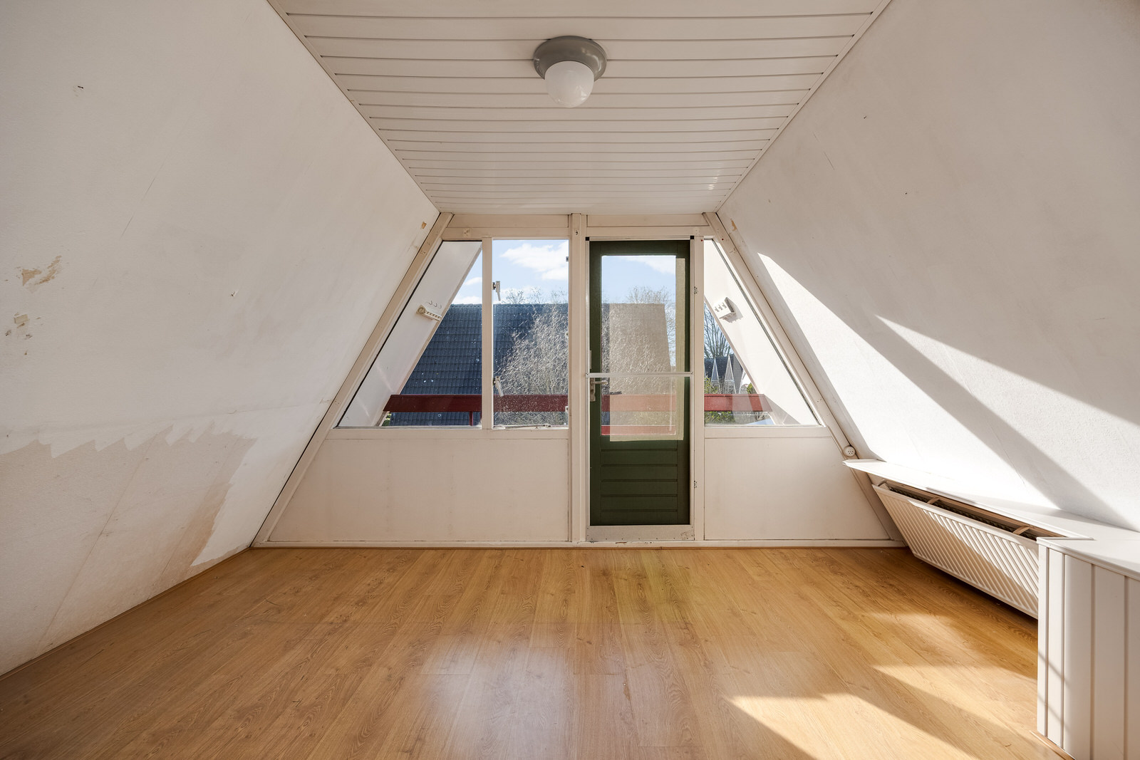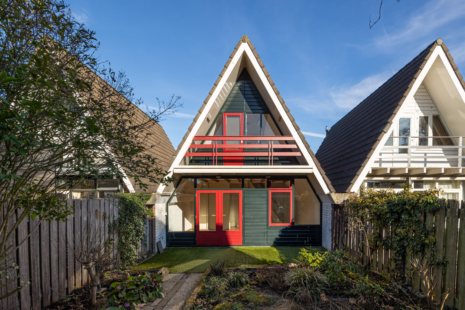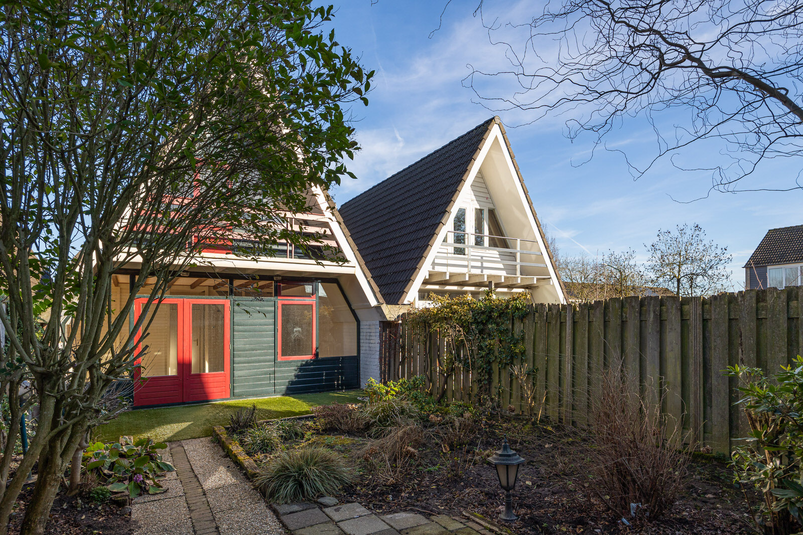 Aan de achterzijde bevindt zich een balkon dat toegankelijk is vanuit de slaapkamer. Vanaf hier is er uitzicht over de tuin en de omliggende bebouwing.